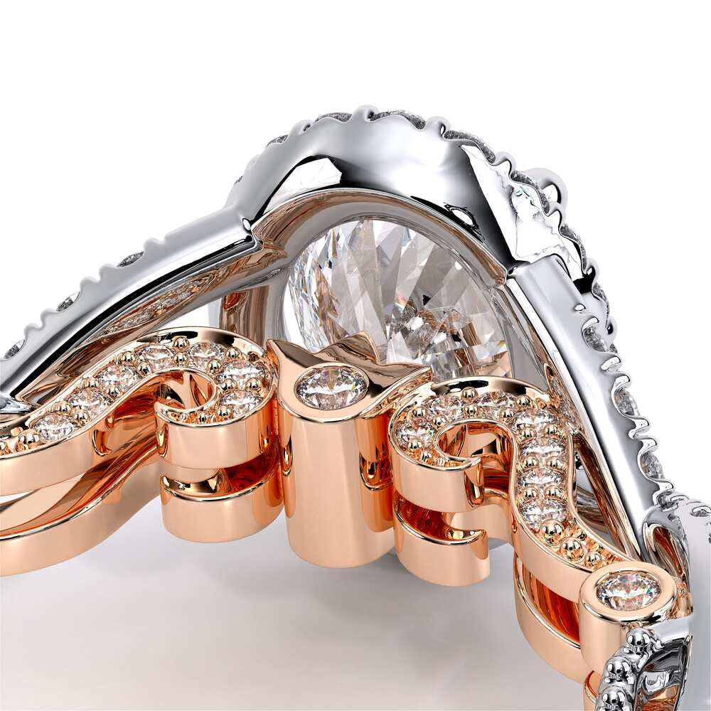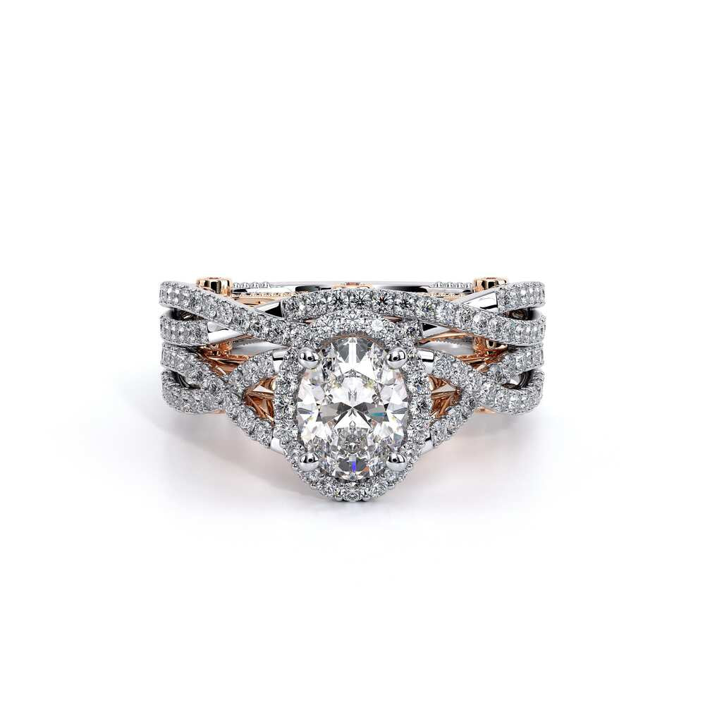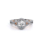 INSIGNIA-7070OV Oval halo engagement ring. Featuring, timeless pave' set round brilliant-cut diamonds on a twisted shank accompanied by Verragio's signature beading.