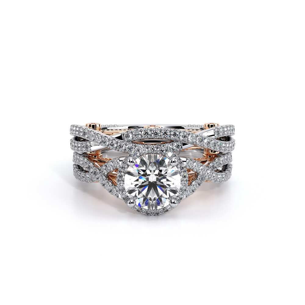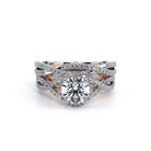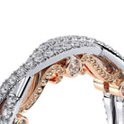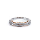 INSIGNIA-7070W diamond wedding ring from the Insignia Collection, featuring round brilliant-cut diamonds pave set on a twisted band. Unique with bezel set diamonds with distinguishing Insignia Scrollwork accompanied by Verragio's timeless signature beading and crest.