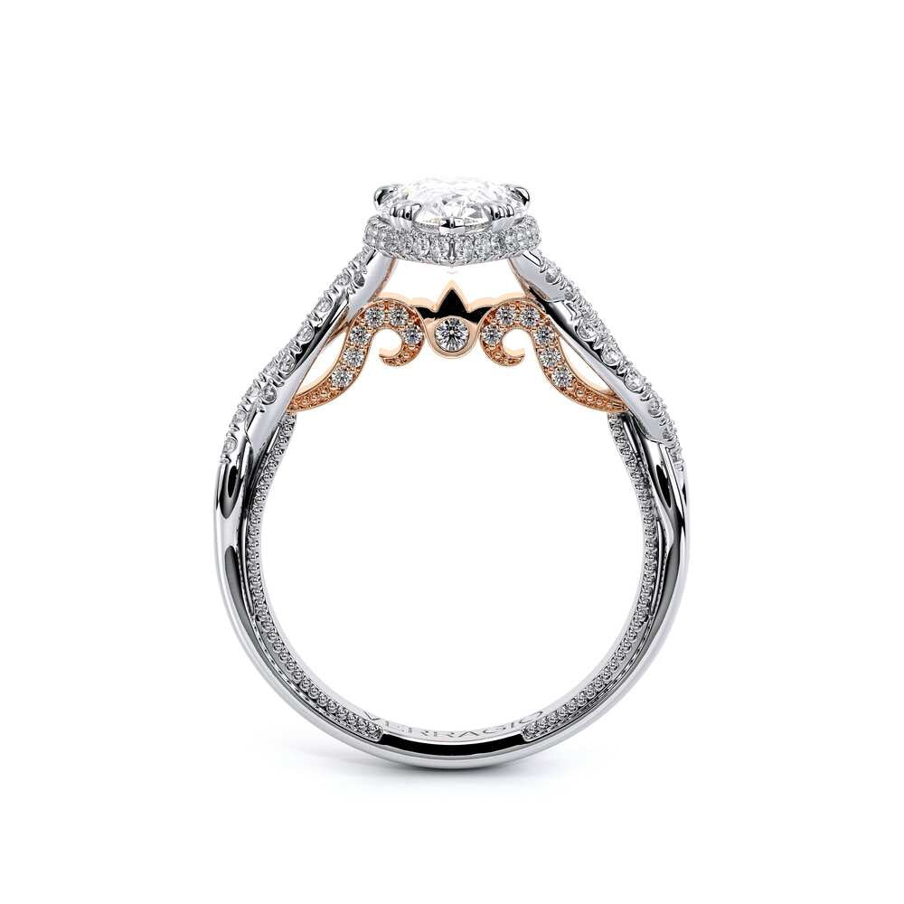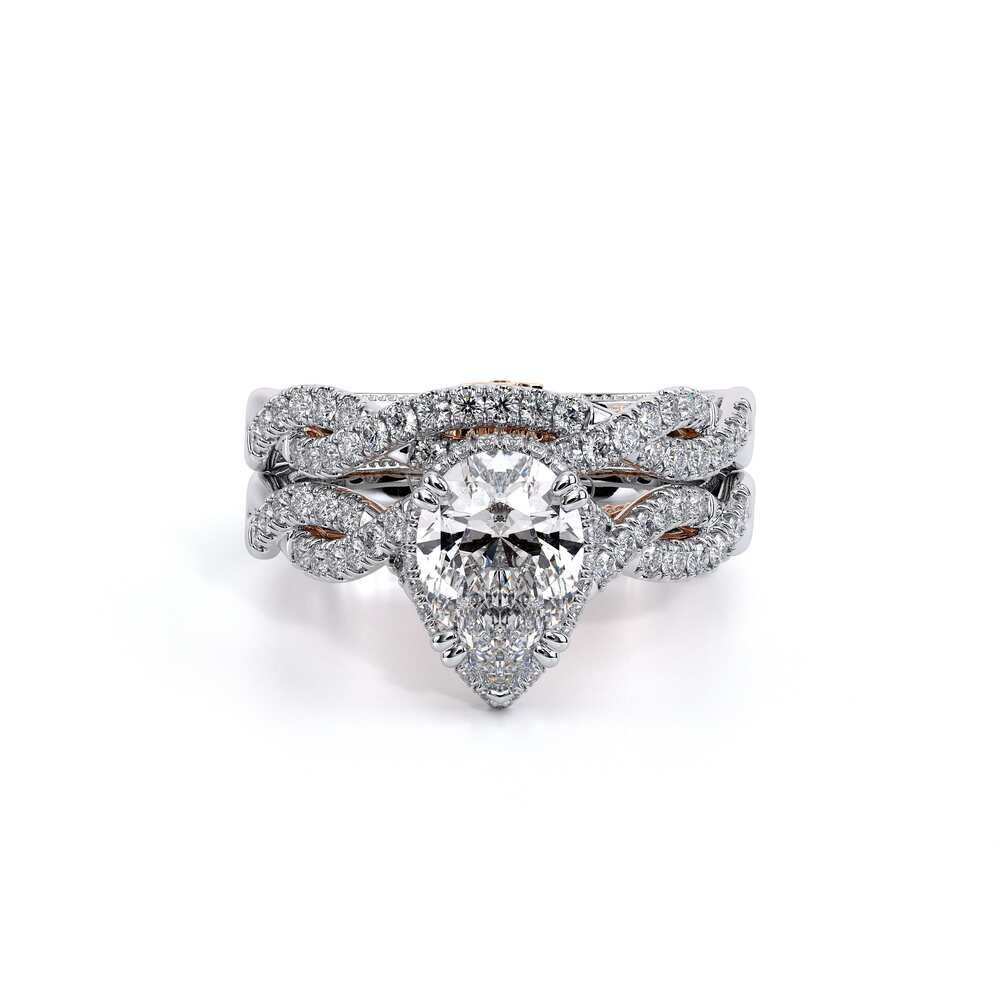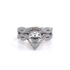 INSIGNIA-7099PS Pear engagement ring featuring Verragio's handcrafted stardust halo adorned with meticulously set round brilliant-cut diamonds atop a twisted band. Accompanying diamond Insignia scrollwork refined with Verragio's timeless signature crest and beading.