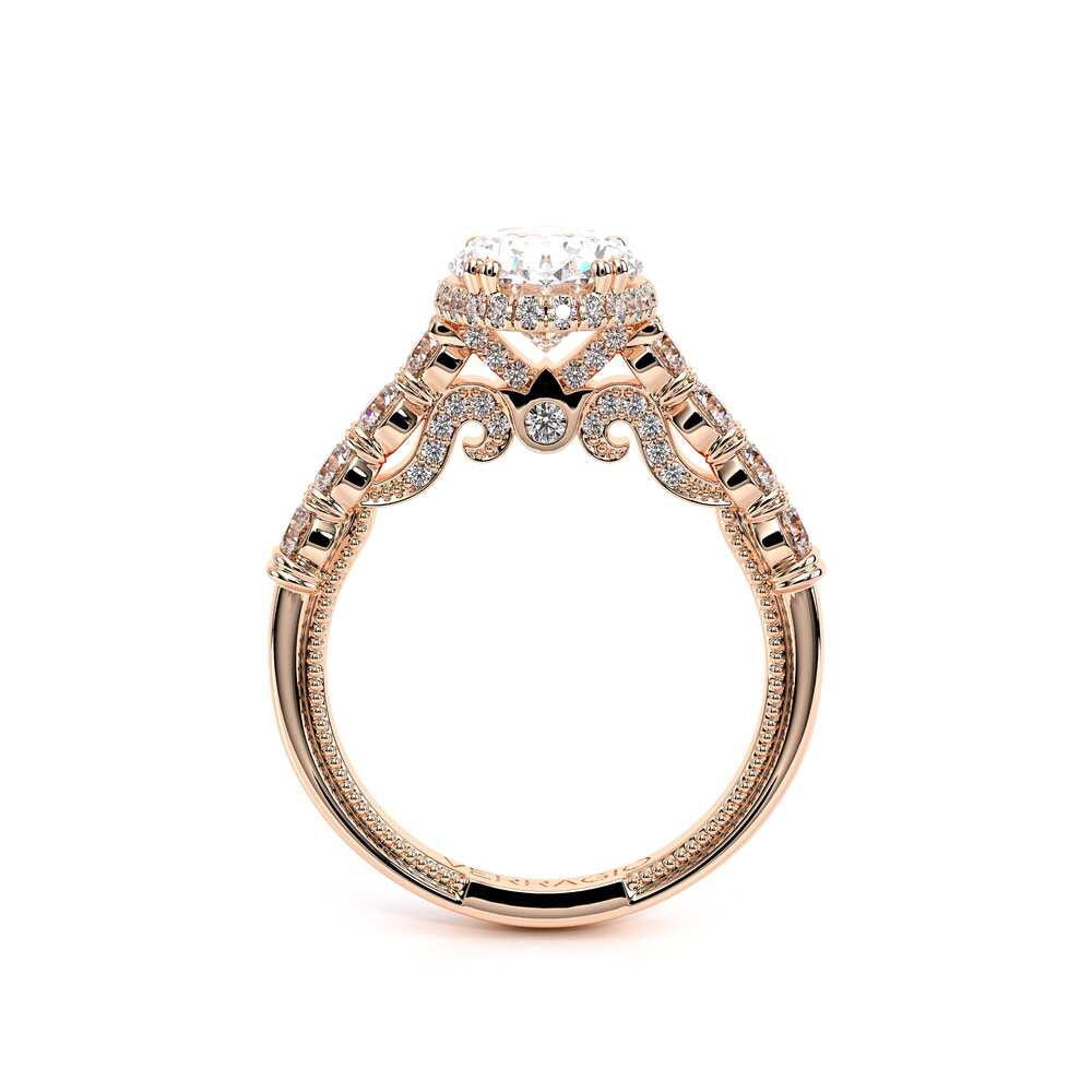 INSIGNIA-7100OV Accentuates your Oval engagement ring with a pave set stardust halo illuminated by round brilliant-cut diamonds. Featuring, a shared-prong set band and handcrafted Insignia's scrollwork. Refined by Verragio's signature beading and crest.
