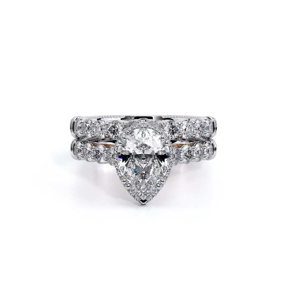 INSIGNIA-7100PEAR Accentuates your Pear engagement ring with a pave set stardust halo illuminated by round brilliant-cut diamonds. Featuring, a shared-prong set band and handcrafted Insignia's scrollwork. Refined by Verragio's signature beading and crest.