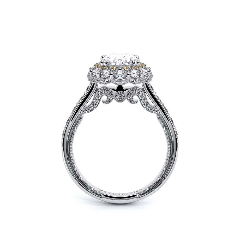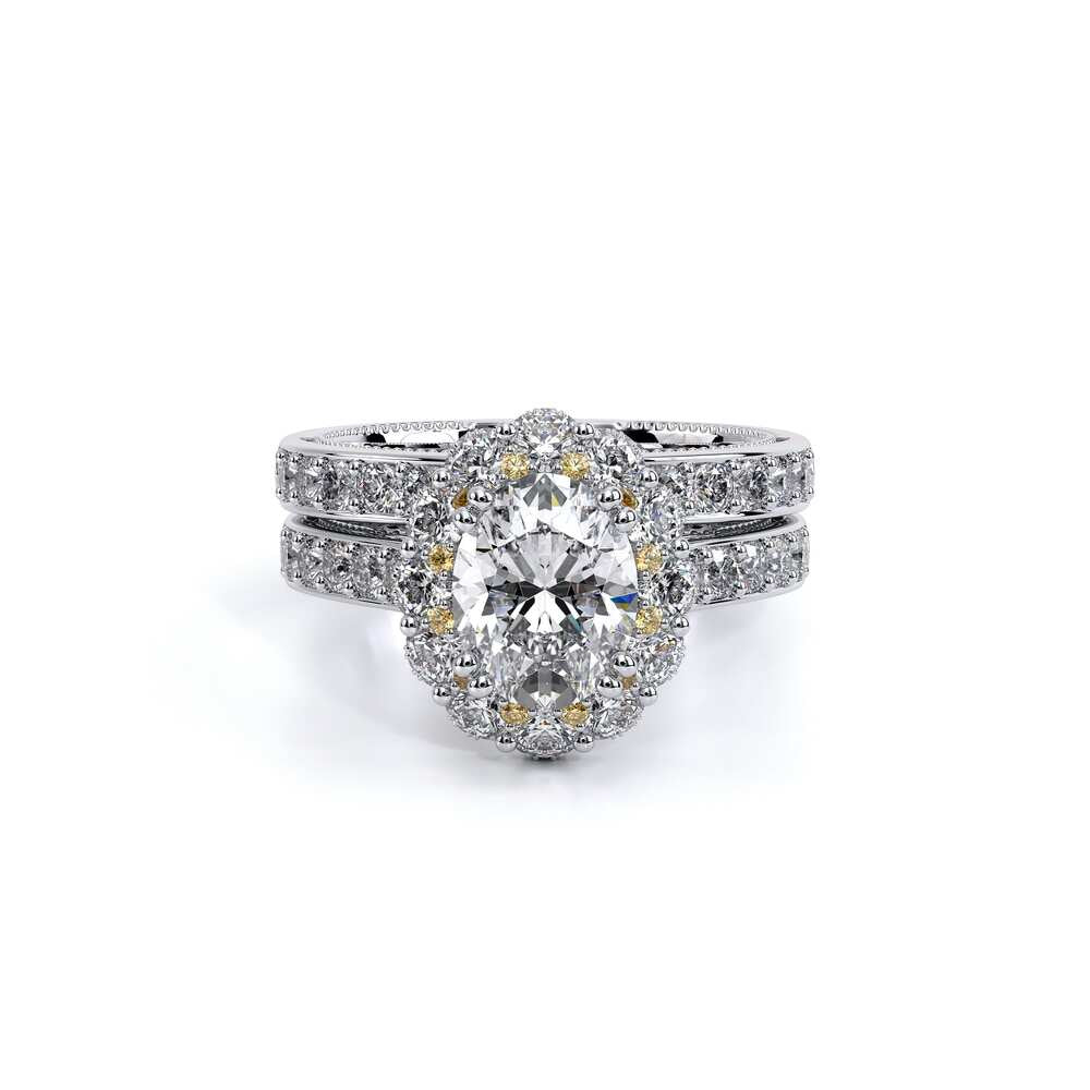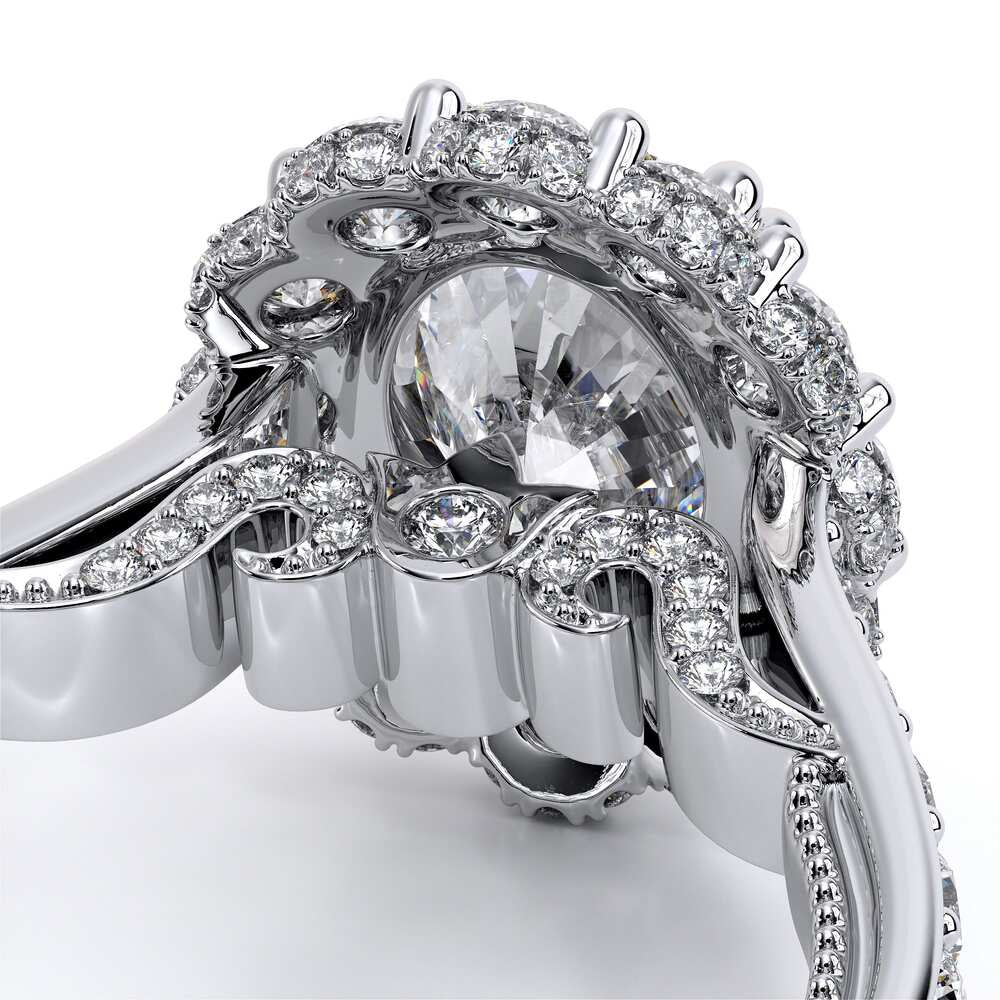 INSIGNIA-7106OV Features our prestigious Enchanted Diamond Halo��, creating a truly unique engagement ring designed to emphasize your oval diamond center. Verragio's timeless signature beading along side Insignia's handcrafted diamond scrollwork are all details adding to the beauty and lure of this ring.