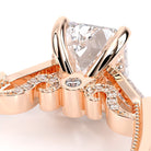 Insignia-7110EM is a enchanting three-stone engagement ring featuring baguette diamond side-stones. Atop a band embellished with round brilliant-cut diamonds, the ring showcases Insignia's bold diamond scrollwork, seamlessly uniting Verragio's iconic crest and signature beading.