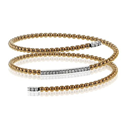 This delicate rose gold bangle hugs the wrist with its understated .42 ctw of white diamond accents in white gold. Perfect for stacking.