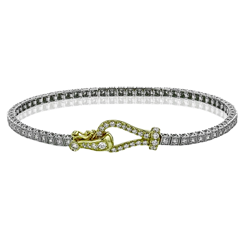 This excellent addition to our Buckle Collection features a yellow gold buckle clasp set into a white gold bracelet, all covered in 1.00 ctw of white diamonds.