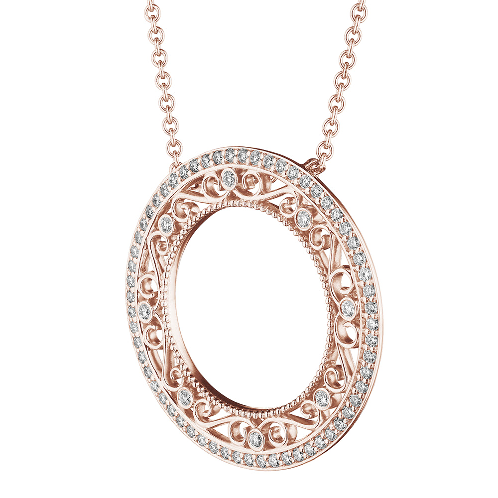 Adorn your neck with Verragio's 18k rose gold Morgan Filigree Circle Pendant. Its classic Victorian charm makes it perfect for those seeking timeless beauty.