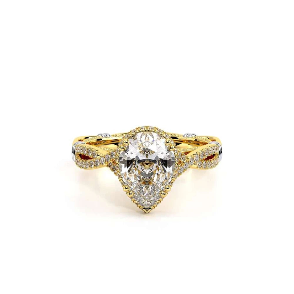 Parisian-105XPS is a classic engagement ring that features twisted pave-set diamond band showcasing our brand new Stardust Pear Halo. The details continue to flow with the addition of Parisian Lace, our Verragio signature beading and lastly the rose gold Timeless wraps.