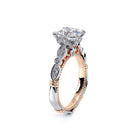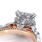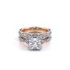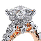 PARISIAN-151R engagement ring carries the vintage scalloped design while adding a beautiful handcrafted diamond tiara to enhance the Princess center diamond. Featuring our rose gold Timeless wraps, Parisian Lace and Verragio' s signature beading- this ring is the complete package.