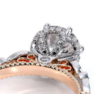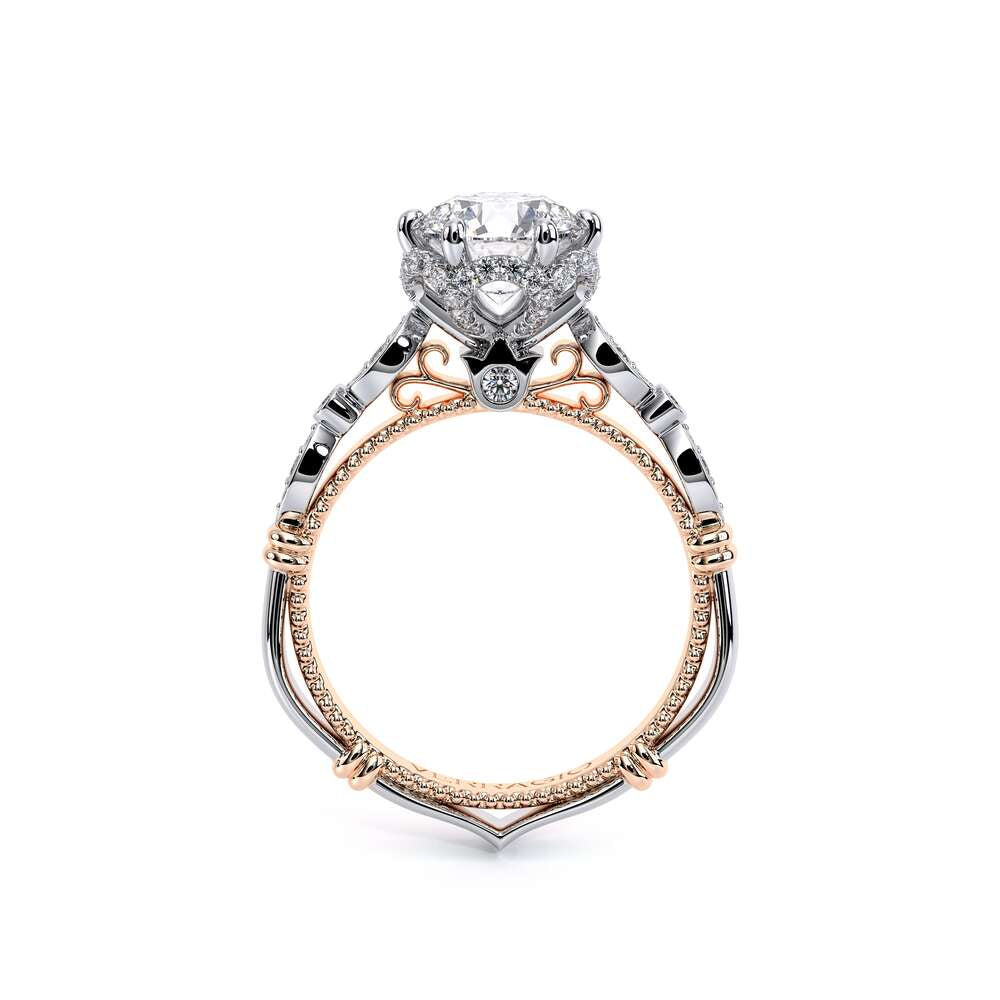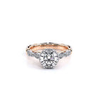 PARISIAN-151R engagement ring carries the vintage scalloped design while adding a beautiful handcrafted diamond tiara to enhance the round center diamond. Featuring our rose gold Timeless wraps, Parisian Lace and Verragio' s signature beading- this ring is the complete package.