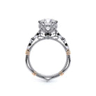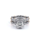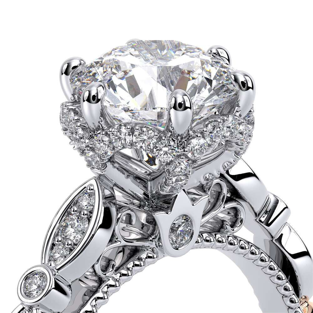 PARISIAN-151R engagement ring carries the vintage scalloped design while adding a beautiful handcrafted diamond tiara to enhance the round center diamond. Featuring our rose gold Timeless wraps, Parisian Lace and Verragio' s signature beading- this ring is the complete package.