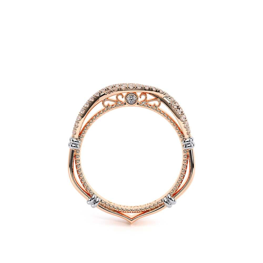 Parisian-153W wedding band is a beautifully handcrafted twisted style band that features the Parisian lace detail, our Verragio Signature beading and rose gold Timeless wraps that is meant to compliment your Parisian engagement ring. **Note: +$400 for Lace, Beading or Both in a different color