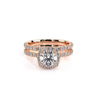 Renaissance-954CU1.8 is beautifully accented with pave set diamond prongs leading to from the shank to the halo. This cushion halo engagement ring sparkles from every angle.