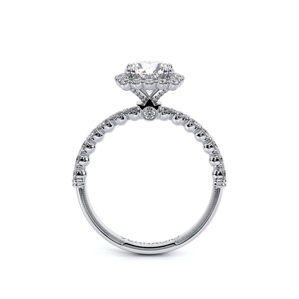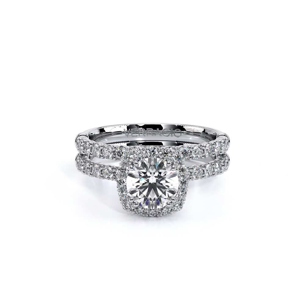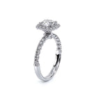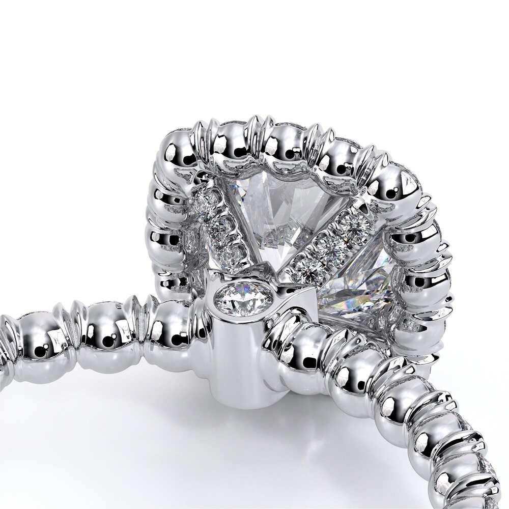 Renaissance-954CU1.8 is beautifully accented with pave set diamond prongs leading to from the shank to the halo. This cushion halo engagement ring sparkles from every angle.