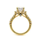 Renaissance-958P2.7 adds additional sparkle to a classic engagement ring. Pave set diamond prongs enhance this elegant three stone engagement ring.