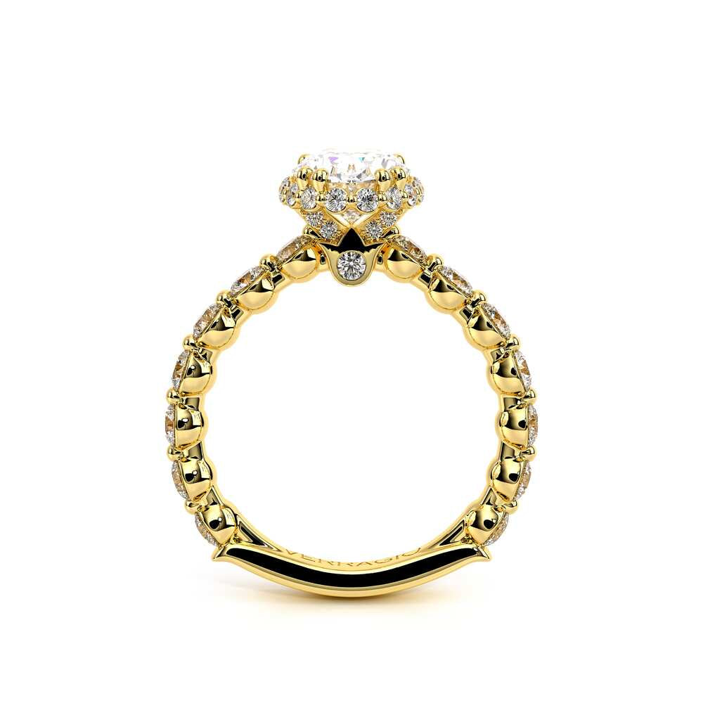 Renaissance-984-HOV2.5 accentuates your choice of center stone with our elegant Stardust halo. Brilliant round diamonds extending three quarters give this unique halo engagement ring extra sparkle.