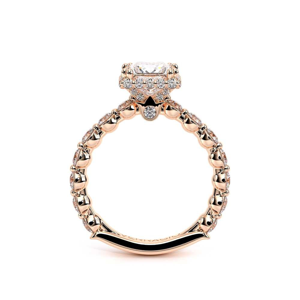 Renaissance-984-HP2.5 accentuates your choice of center stone with our elegant Stardust halo. Brilliant round diamonds extending three quarters give this unique halo engagement ring extra sparkle.