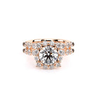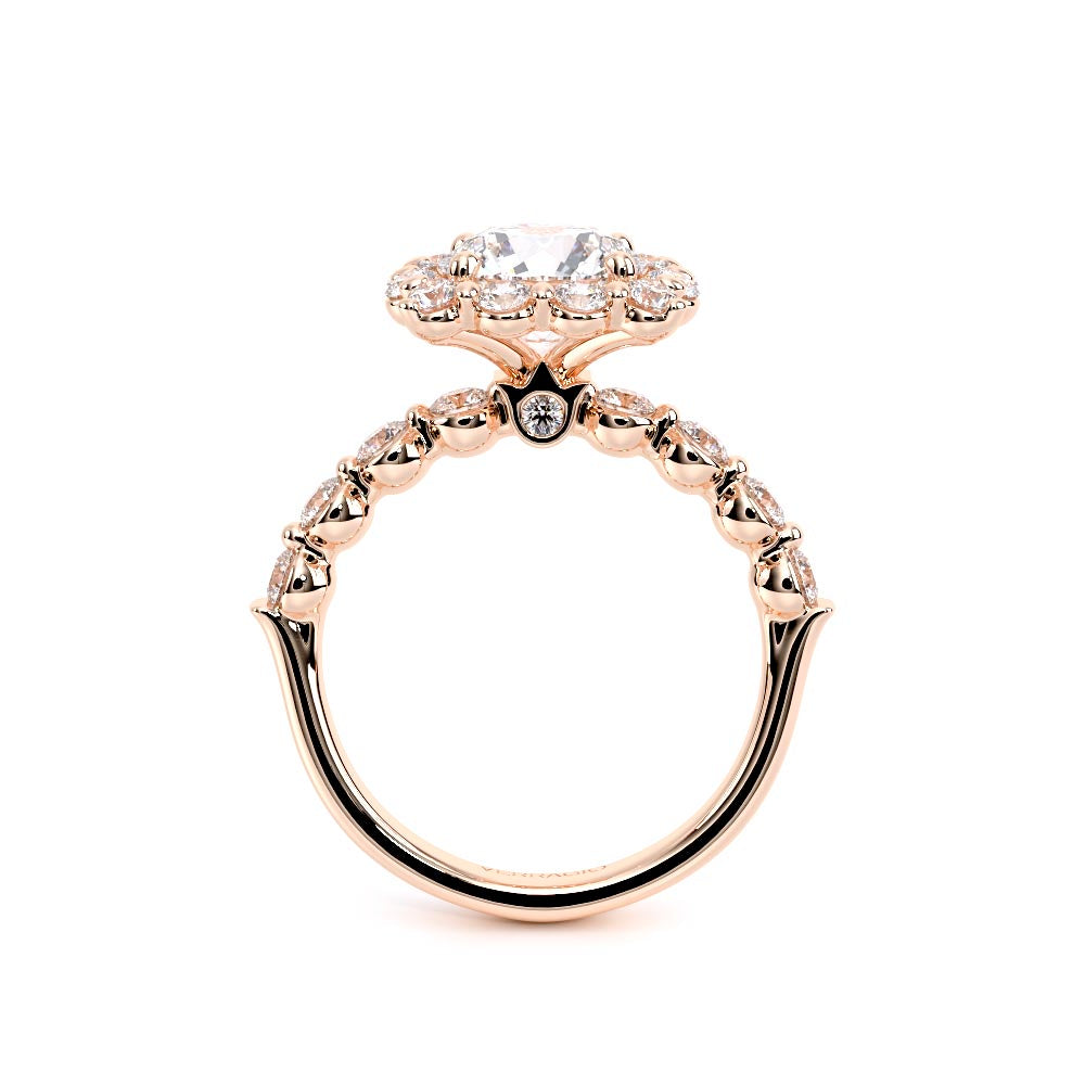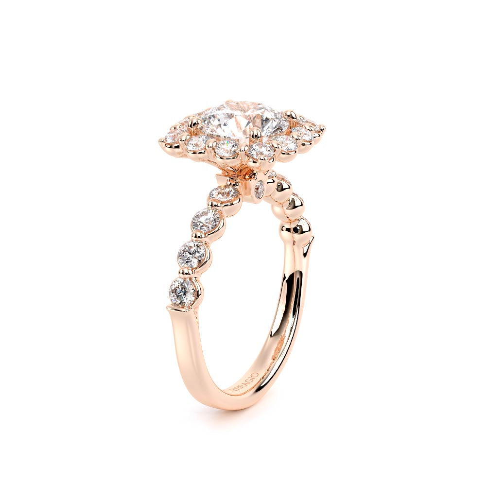 Renaissance-990CU-2.5 features a diamond-rich, halo setting meticulously crafted to cradle each stone securely. Its sleek, shared-prong cup setting exudes elegance, while the design ensures both comfort and durability. Verragio's signature crest unifies this classic yet modern style.