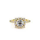 Renaissance-990CU-2.5 features a diamond-rich, halo setting meticulously crafted to cradle each stone securely. Its sleek, shared-prong cup setting exudes elegance, while the design ensures both comfort and durability. Verragio's signature crest unifies this classic yet modern style.