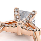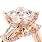 Renaissance-991P-S is a captivating three-stone engagement ring featuring baguette diamonds. Pave diamonds beautifully frame your center stone; the simple shank adorned with delicate milgrain detail elevates this ring with vintage charm. The Verragio signature crest completes the refinement of this piece.
