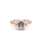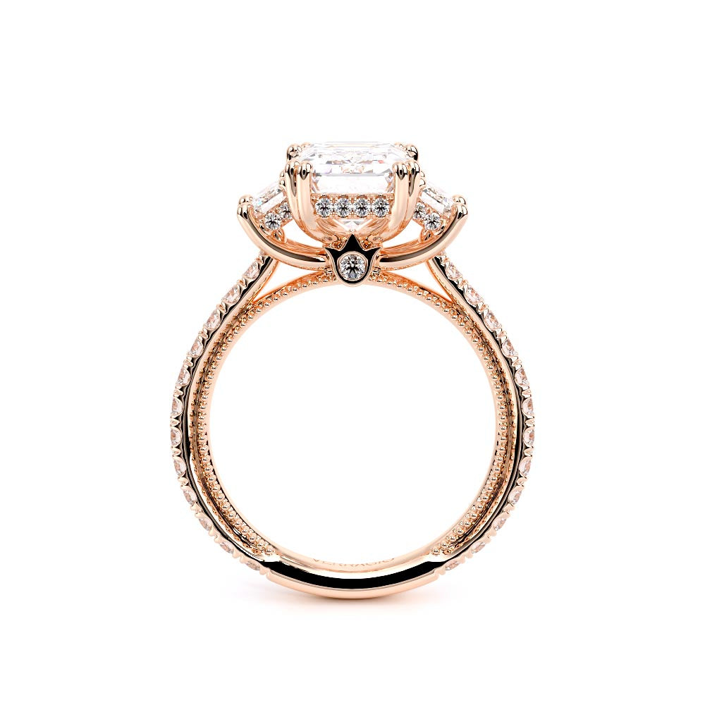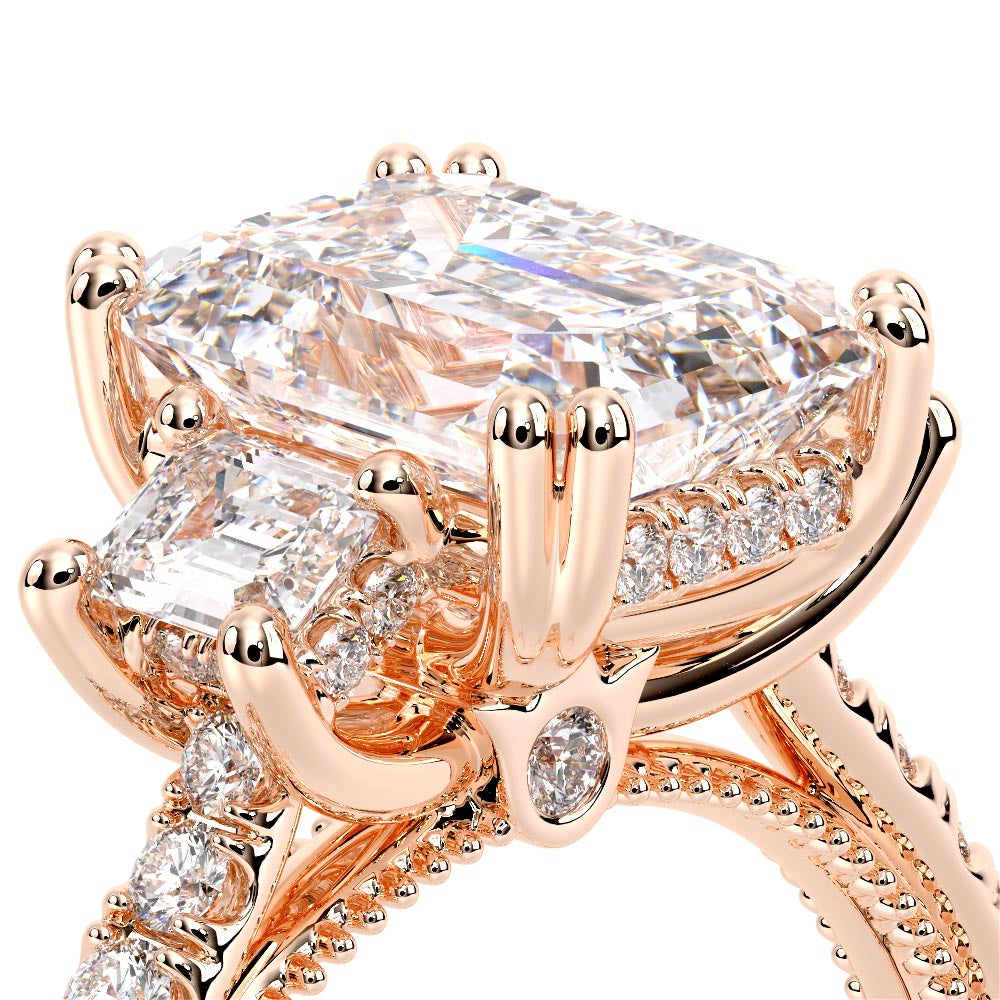Renaissance-993EM-1.7 features three dazzling stones representing past, present, and future. The cathedral shank adds modern elegance with its delicate diamonds. Milgrain detailing and the signature Verragio crest make this ring a symbol of timeless love and commitment.