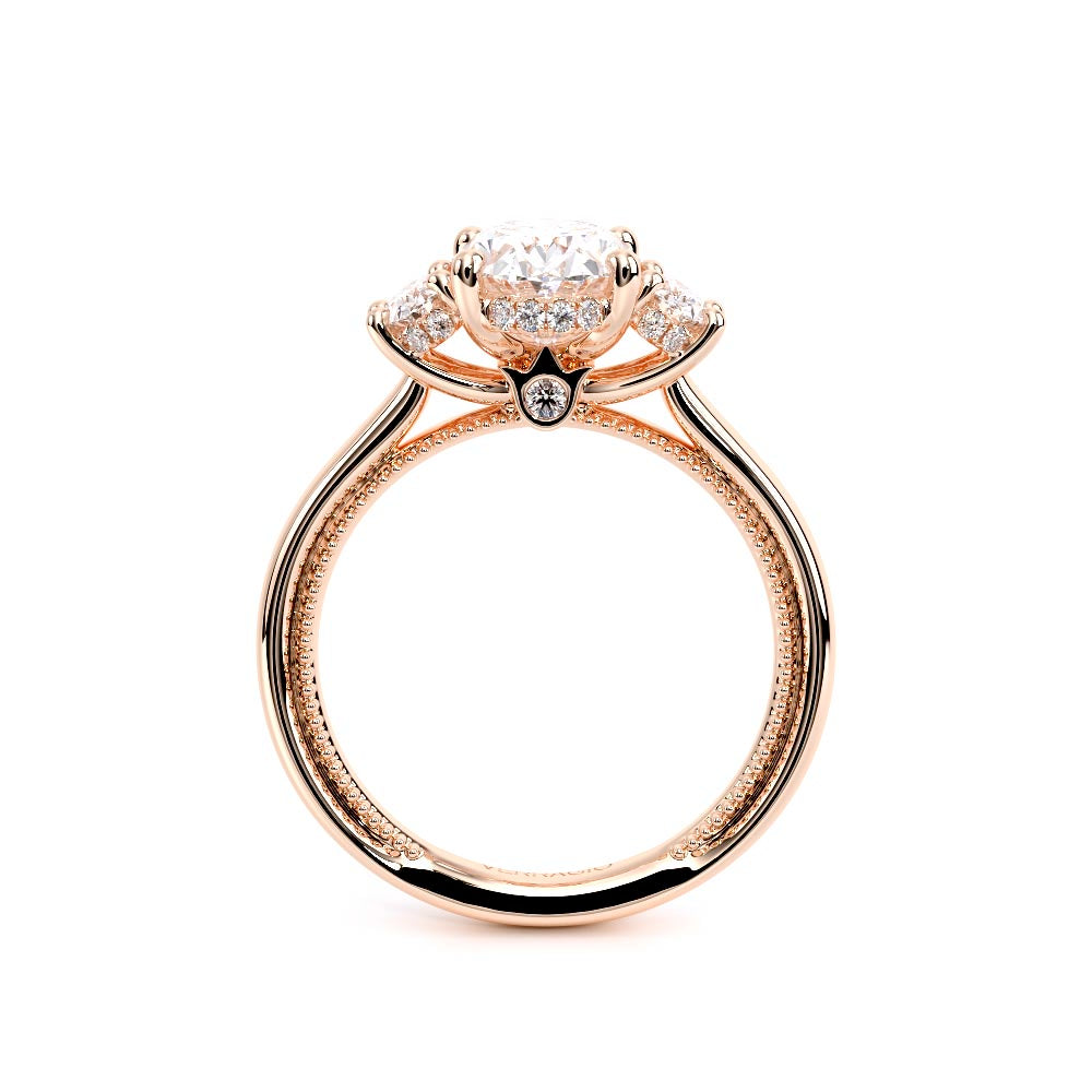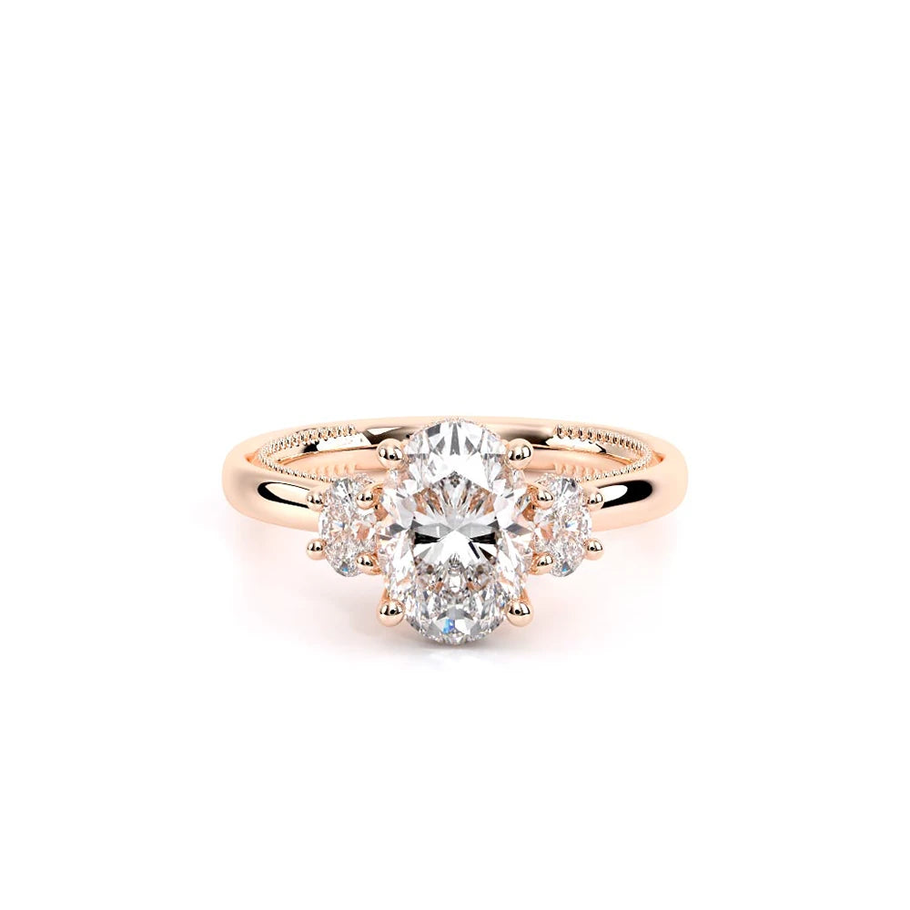 Renaissance-993OV-S features three dazzling Oval-cut side stones representing past, present, and future. The cathedral high-polish shank adds modern elegance with milgrain detailing and the signature Verragio crest make this ring a symbol of timeless love and commitment.