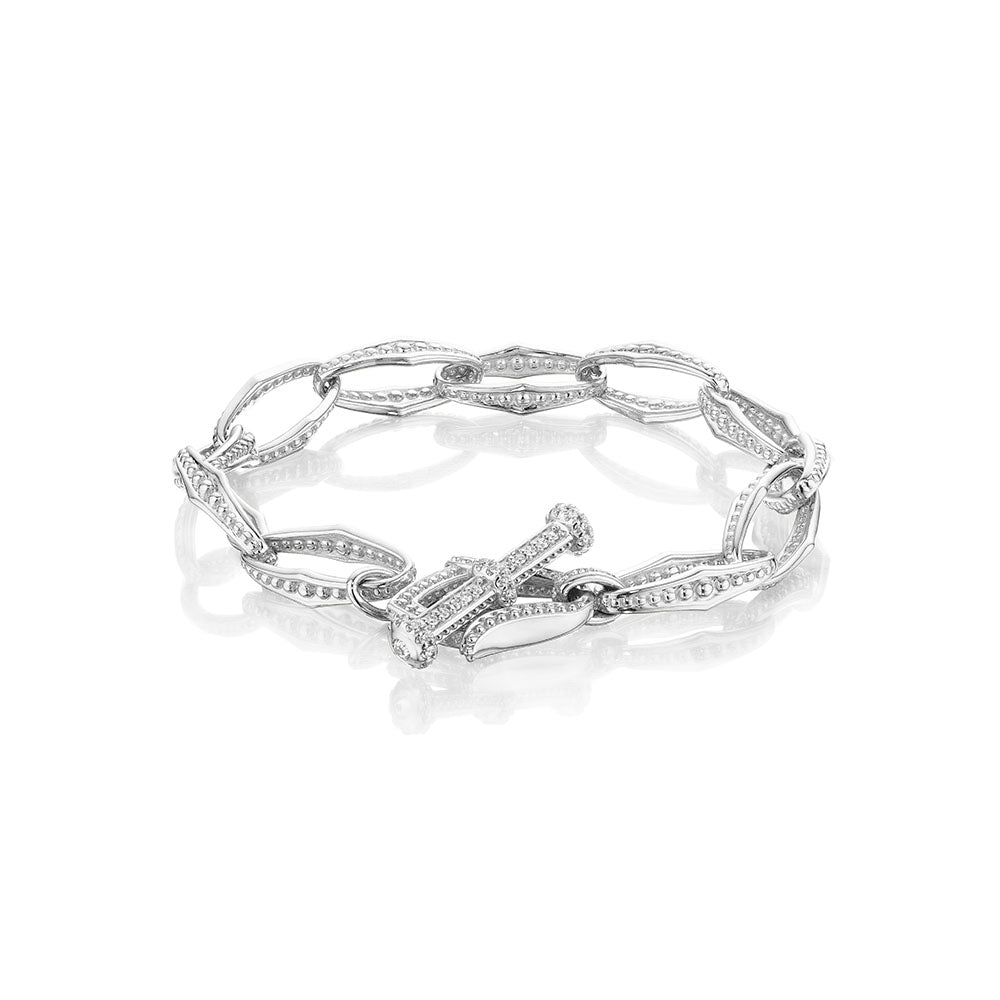 J-0277200-WB 18K white gold diamond Rosecliffe link bracelet with 0.24ctw diamonds.