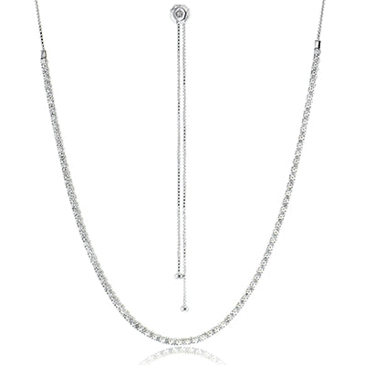 THIS VERSITLE 18K WHITE GOLD NECKLACE FEATURES 4.08CTTW DIAMONDS AND CAN BE WORN AS A CHOKER, LONGER DIAMOND NECKLACE OR LARIAT.