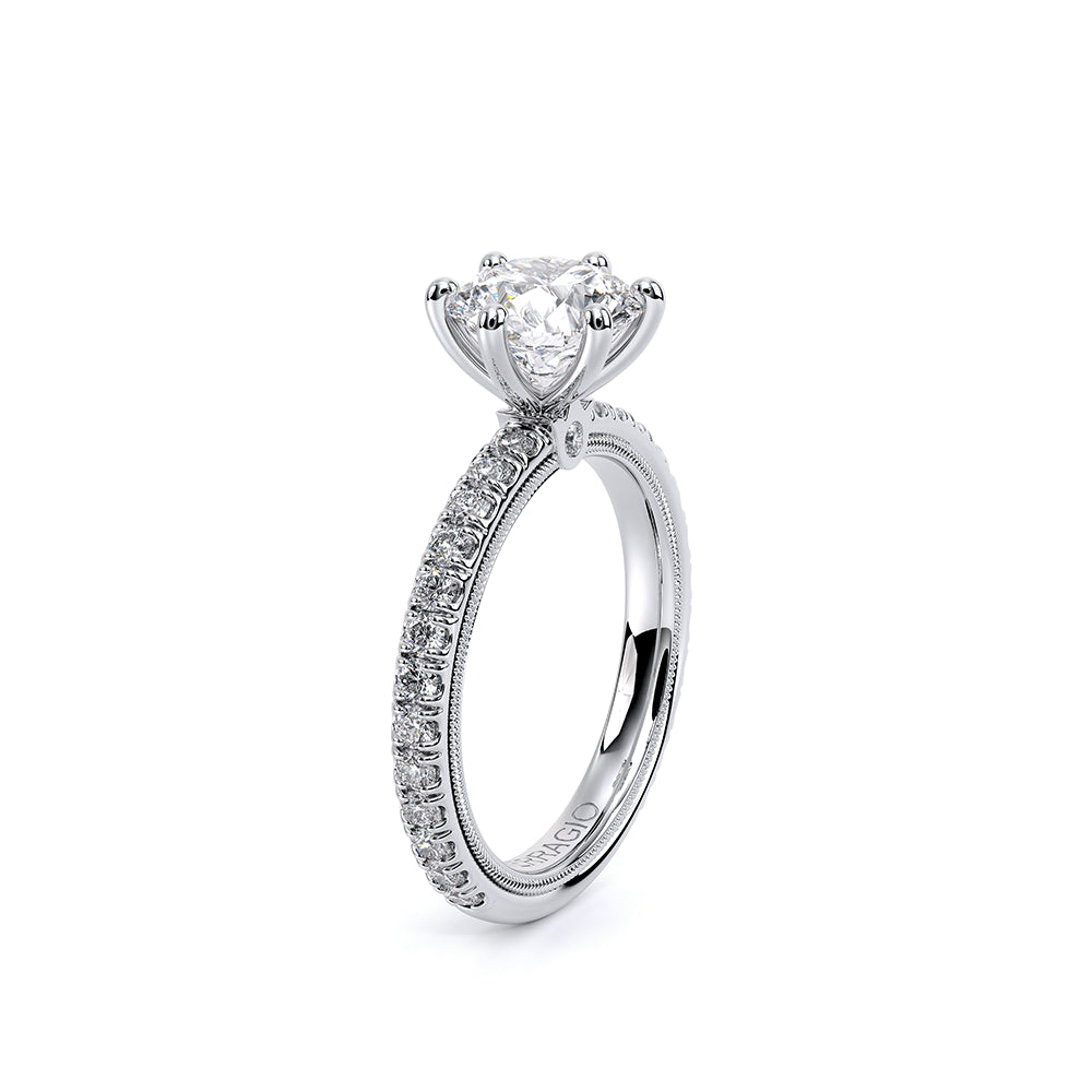 A flawless and refined look on a classic silhouette- TR180R6 is forged under extreme pressure and pushes the limits of craftsmanship. This ring features our hand sculpted Signature Verragio beading and delicate 6 prongs to perfectly highlight your choice of center stone.