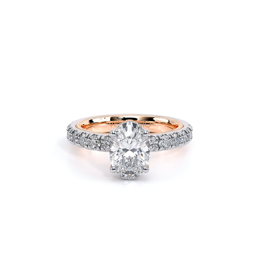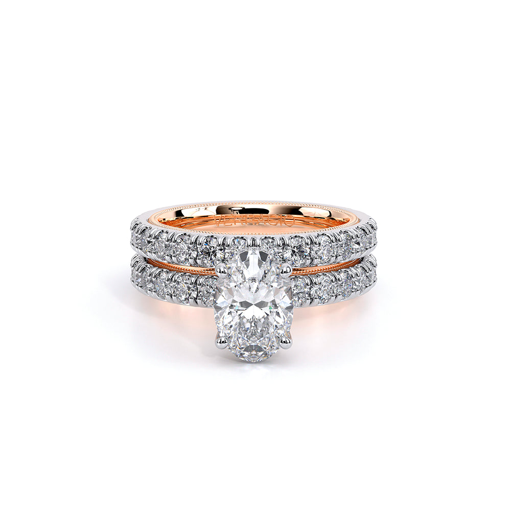 A flawless and refined look on our widest band yet in the Tradition collection- TR250-DBOV is forged under extreme pressure and pushes the limits of craftsmanship. This ring features our hand sculpted Signature Verragio beading and delicate diamond bridge halo guaranteed to let your beautiful center stone shine.