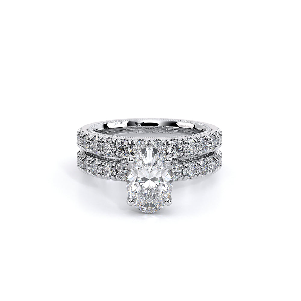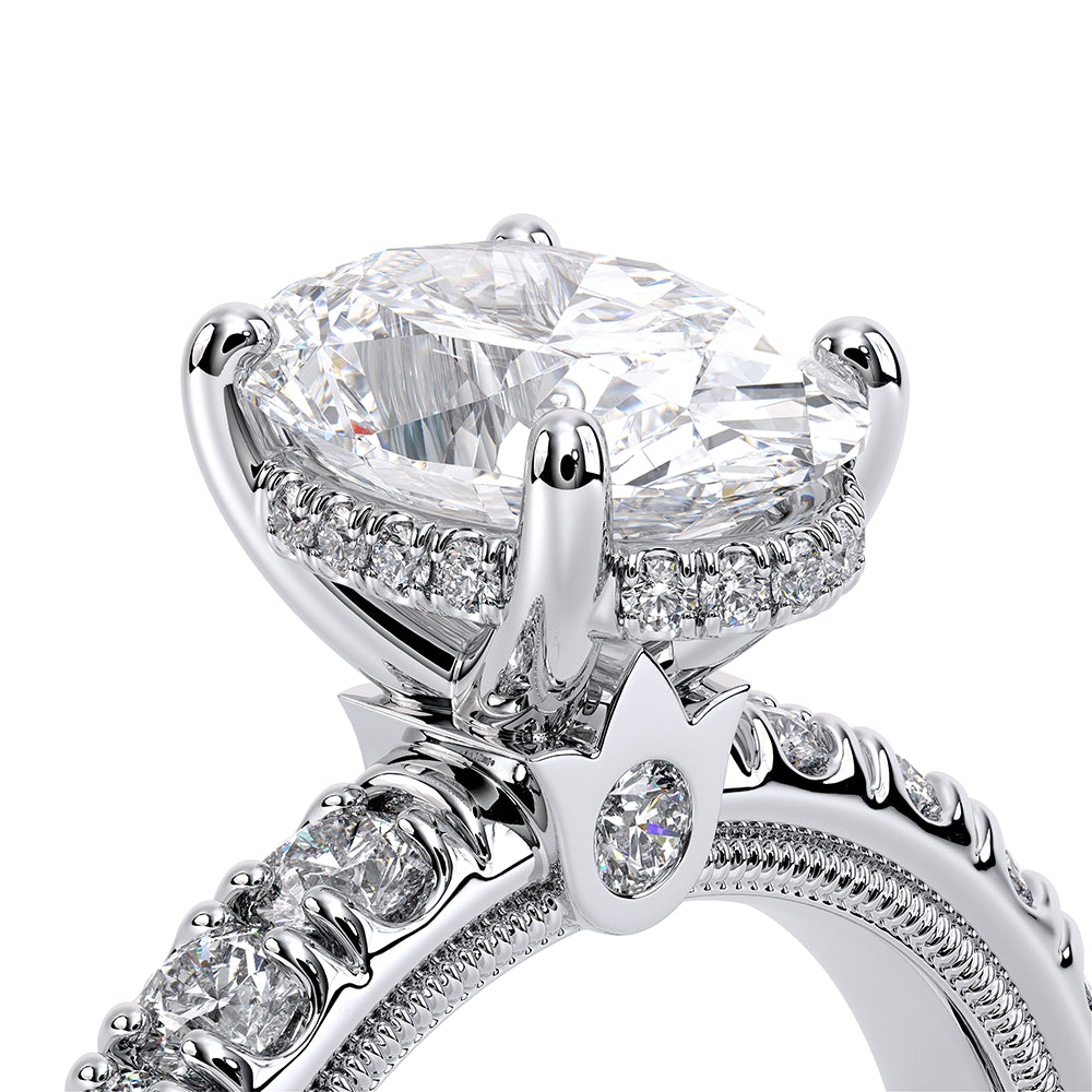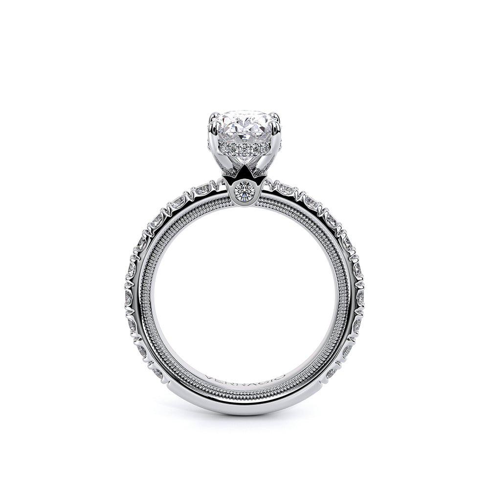 A flawless and refined look on our widest band yet in the Tradition collection- TR250-DBOV is forged under extreme pressure and pushes the limits of craftsmanship. This ring features our hand sculpted Signature Verragio beading and delicate diamond bridge halo guaranteed to let your beautiful center stone shine.