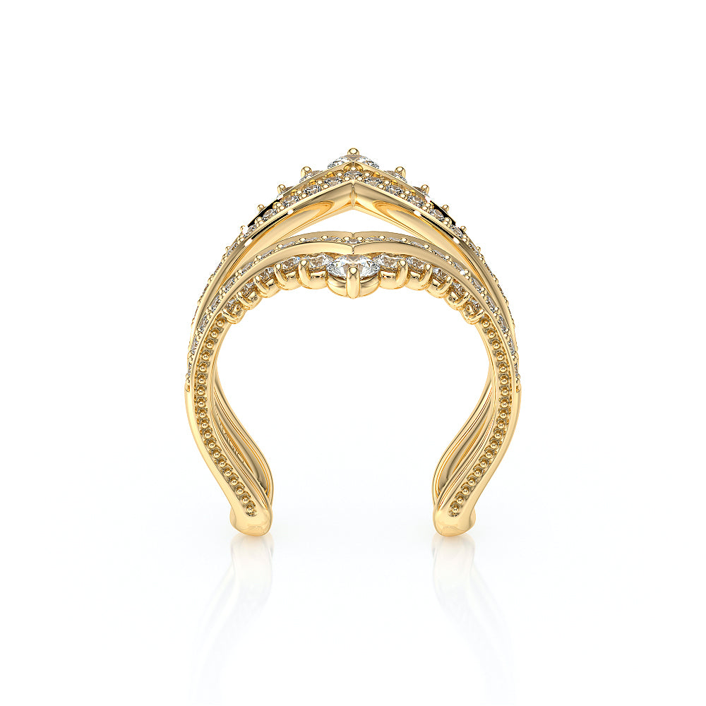 The diamond-intensive embellisher, VNG-2042W, showcases two inner rows of delicate round diamonds, accented by an outer row of graduating stones that transition seamlessly from small to large. Its refined structure adds an element of bold sophistication, exemplifying Verragio's dedication to timeless design.