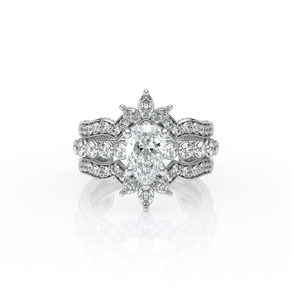 Set for a pear-shaped center, the VNG-2201PS-2.4 features a euro-style shank at the bottom of the ring, elevated by two tiny diamond bezels. 2.4mm stones gracefully adorn the shank, set with a single shared prong for a timeless and elegant design.