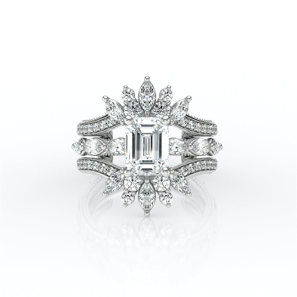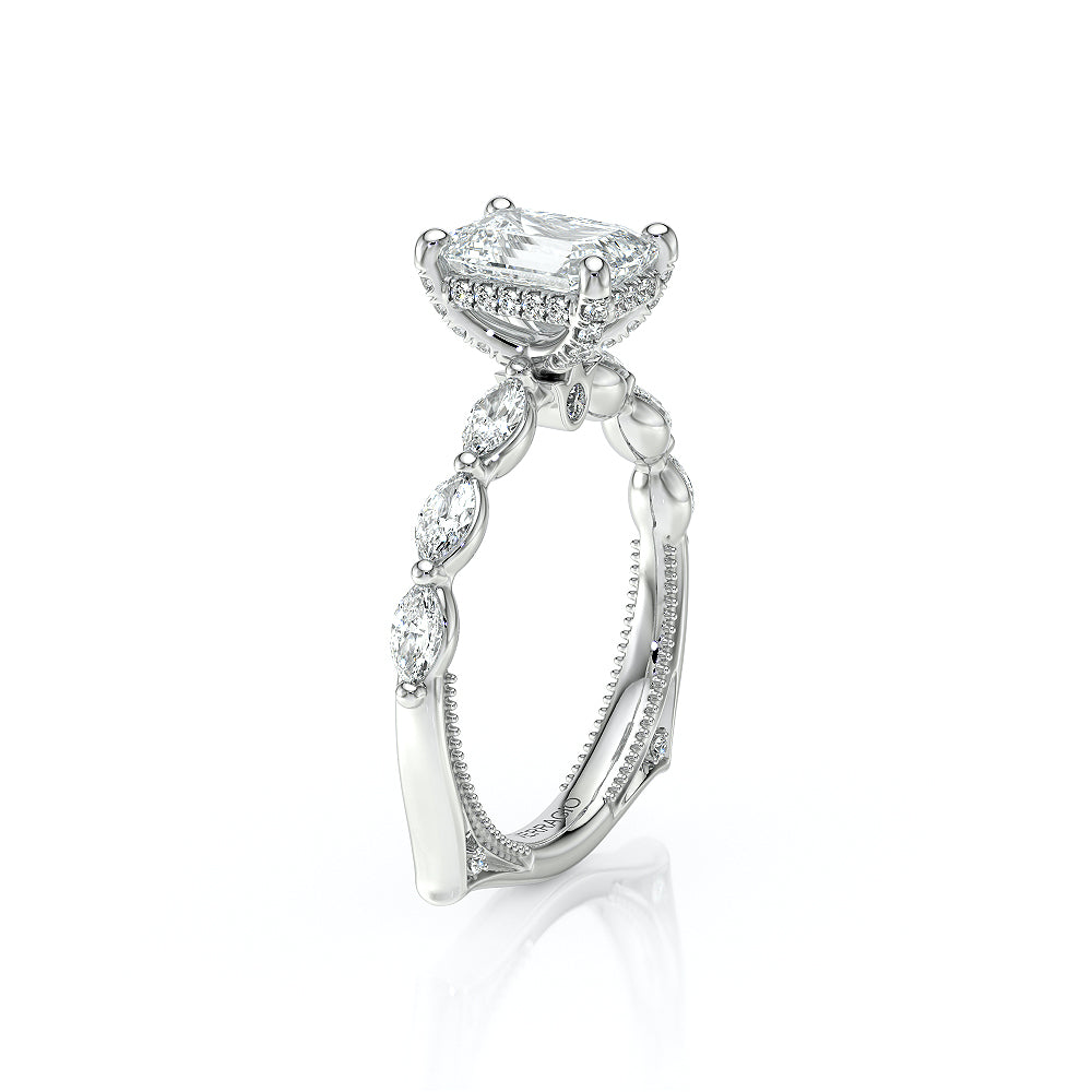 The VNG-2205EM combines three bold south-to-west facing marquise stones with Verragio beading and a diamond head, offering a sophisticated design with added sparkle.