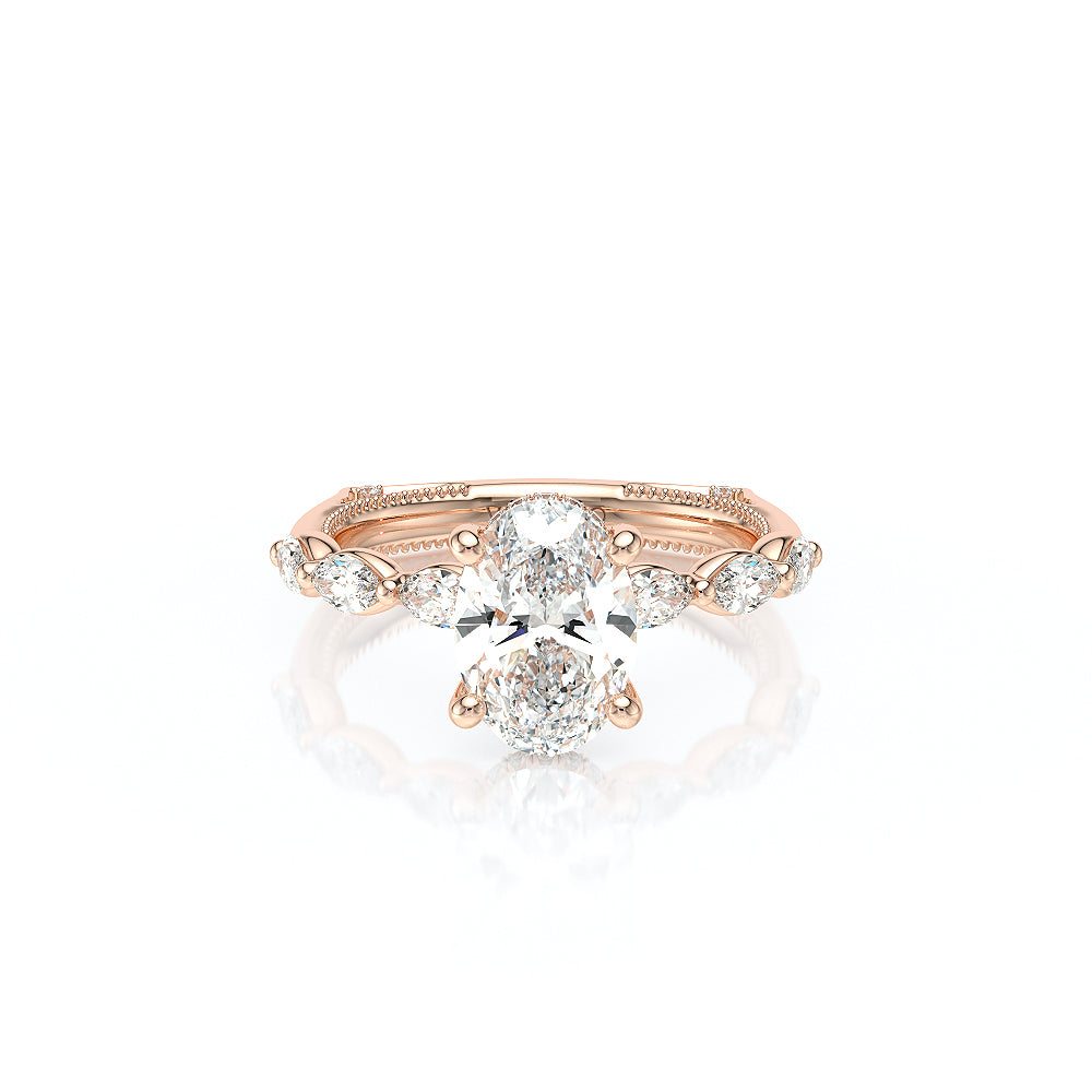 The VNG-2205OV highlights three striking south-to-west facing marquise stones on the shank, paired with Verragio beading and a diamond head for an elegant and unique design.