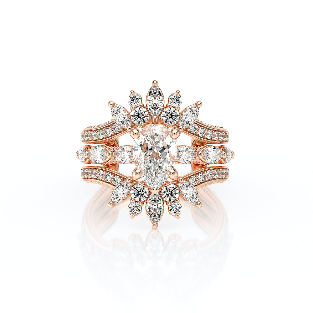 The VNG-2205PS features three distinctive south-to-west facing marquise stones along the shank, enhanced by Verragio beading and a diamond head for a refined look.