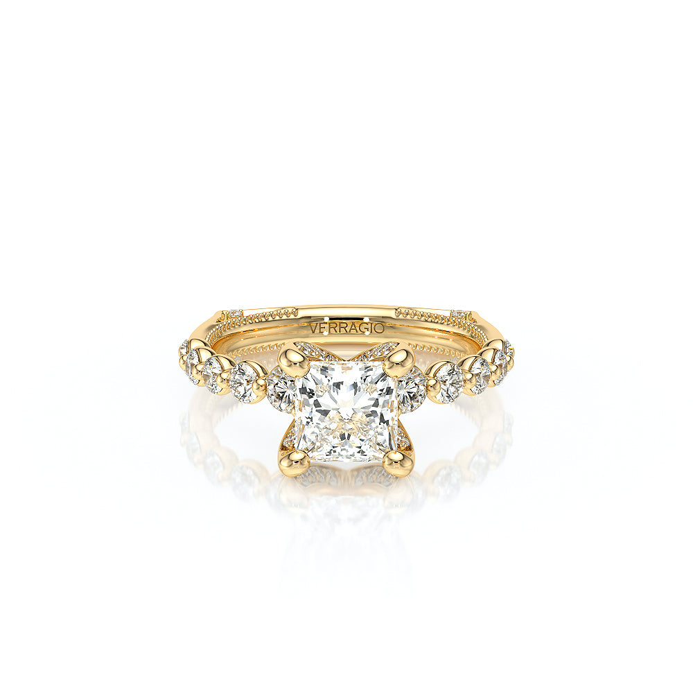 The VNG-2206P features round graduating stones that transition along the shank, with diamonds on each prong���s sides and Verragio beading enhancing the intricate and graceful design.