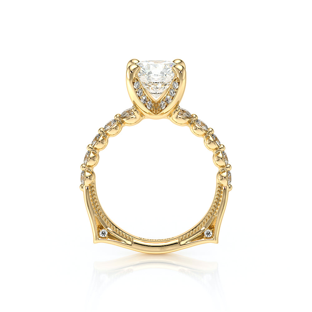 The VNG-2206R showcases round graduating stones along the shank, flowing from smaller to larger toward the head. Diamonds on each side of the prongs and Verragio beading create a beautifully detailed and elegant design.