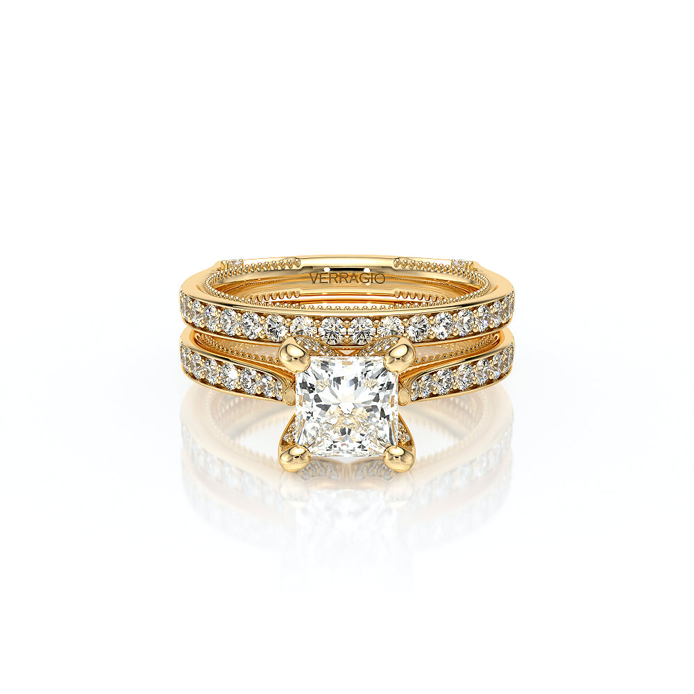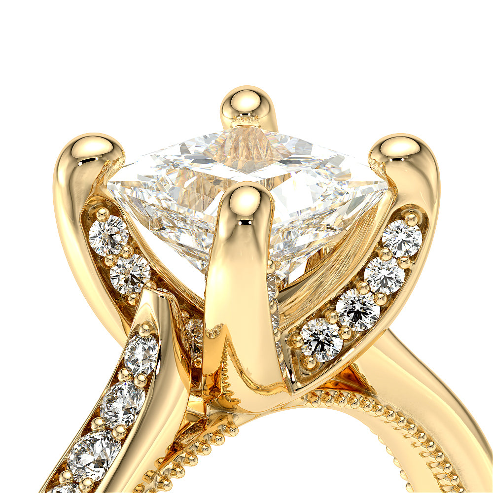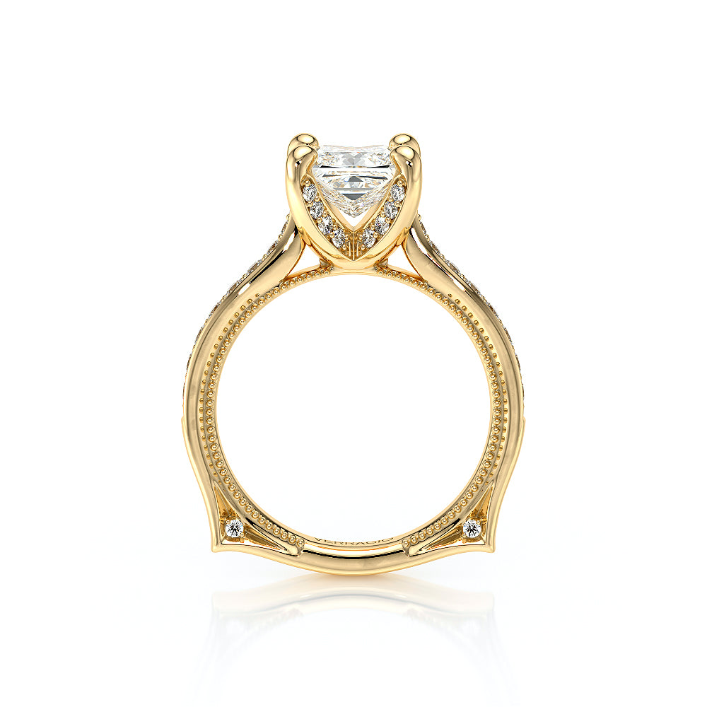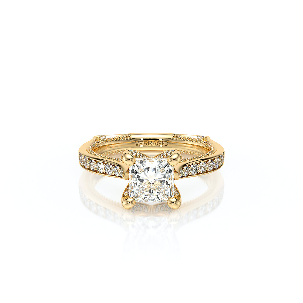 The VNG-2207P features a stunning euro-style design with two bezels at the base, Verragio's signature beading, and two rows of diamonds on each side of the prong, creating a sophisticated and timeless piece.