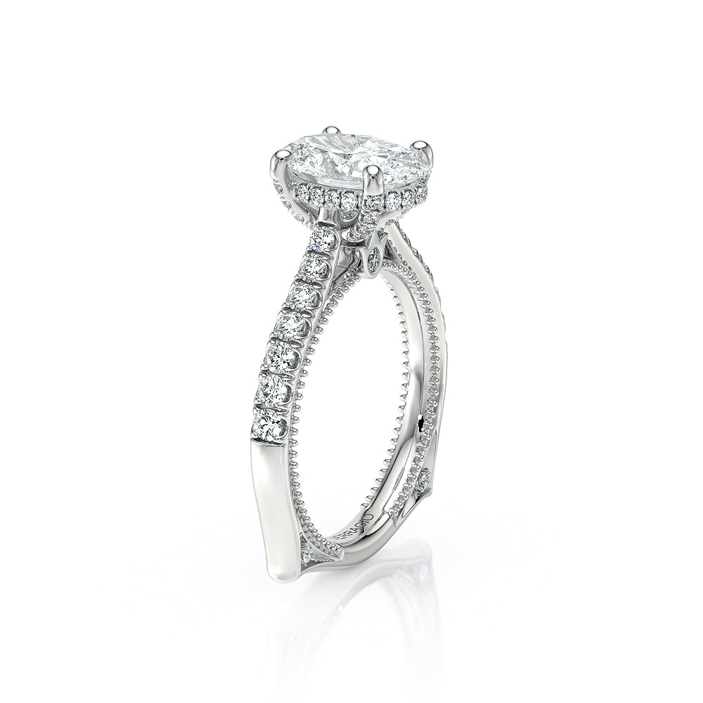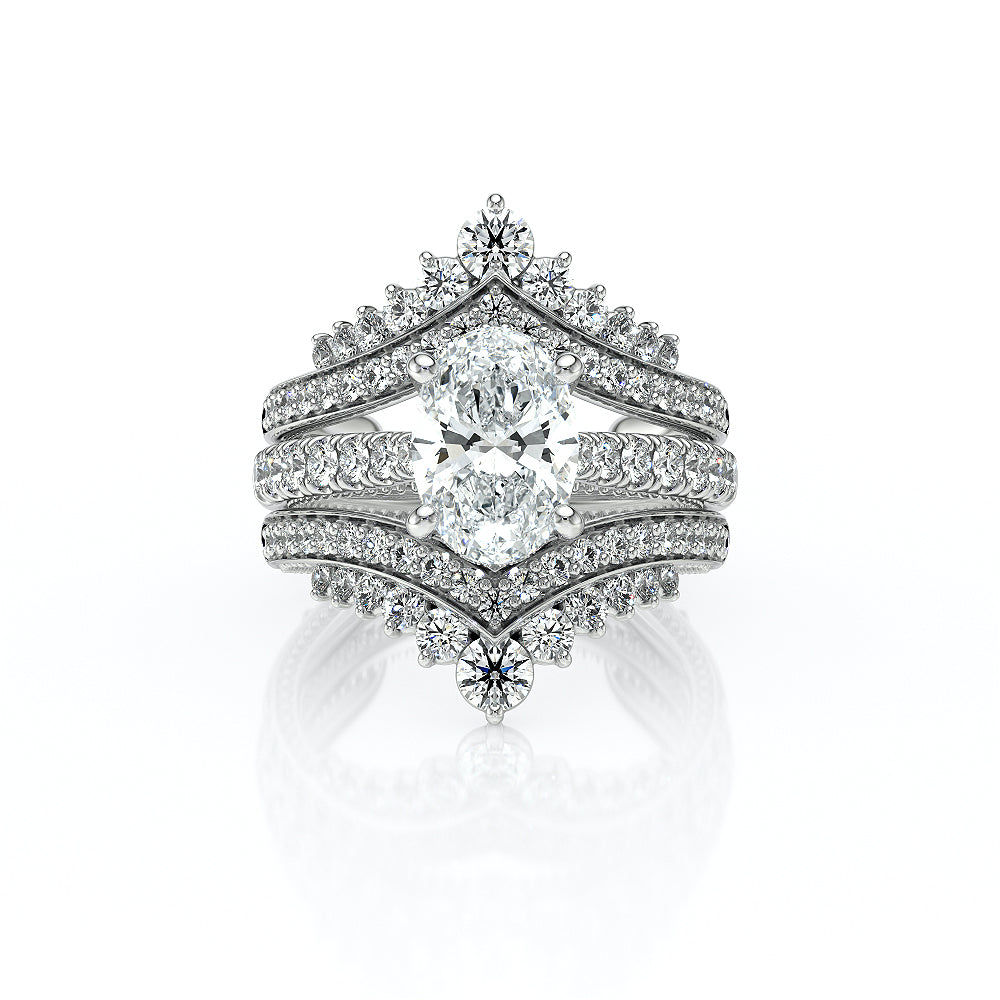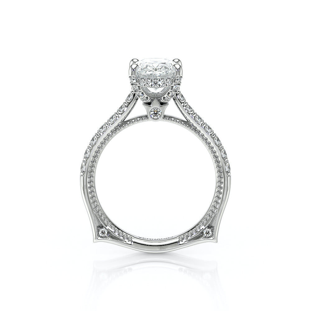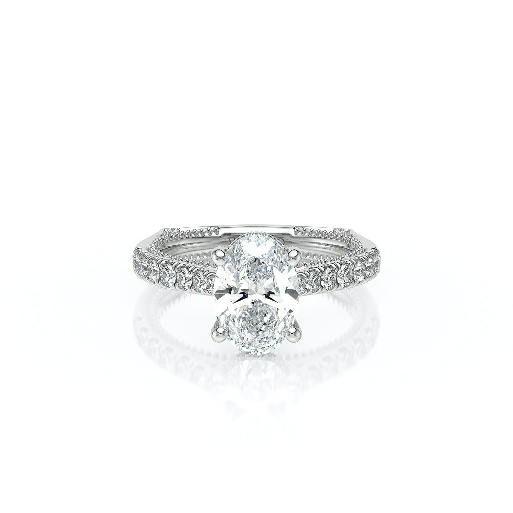 The VNG-2208OV-1.9 highlights a sleek design with 1.9mm diamonds along the shank, enhanced by diamond-accented prongs and bridge, designed to complement an oval center stone.