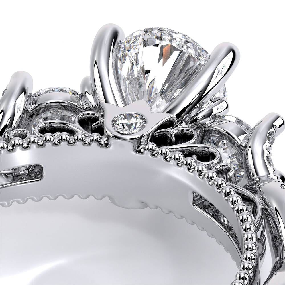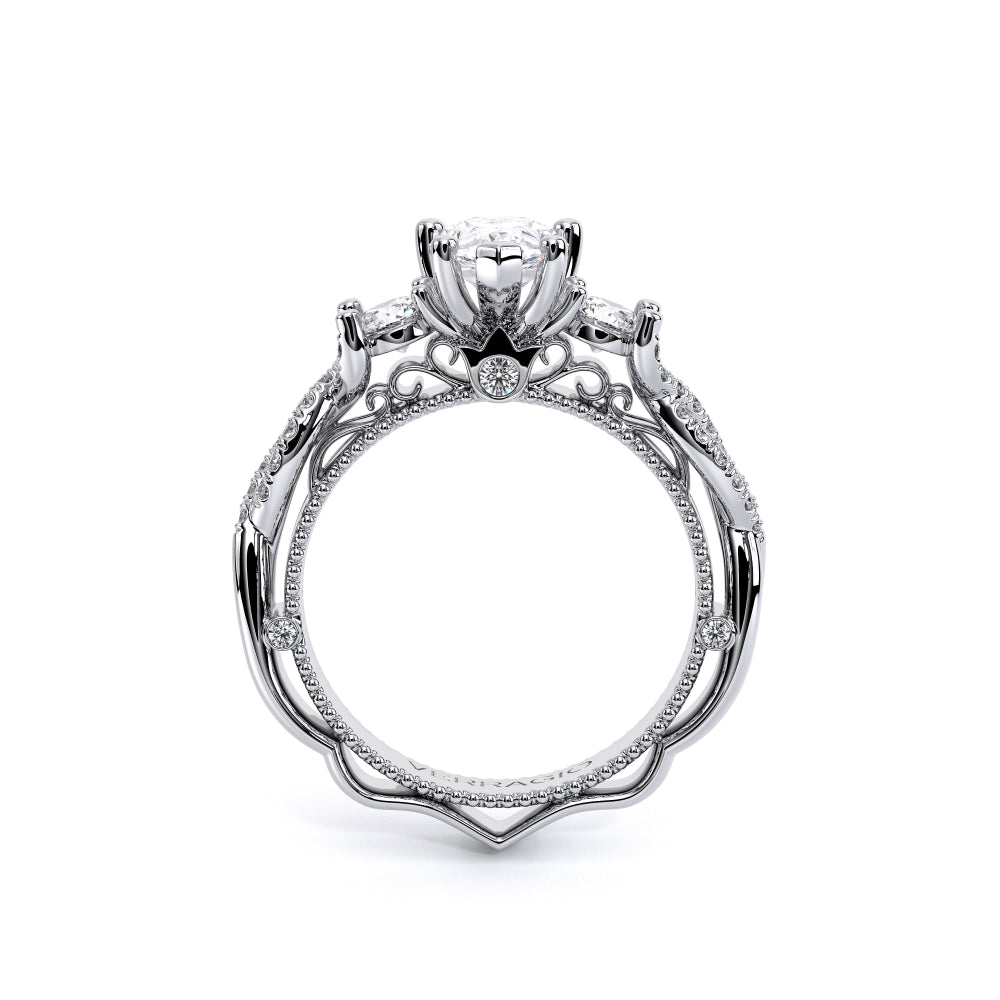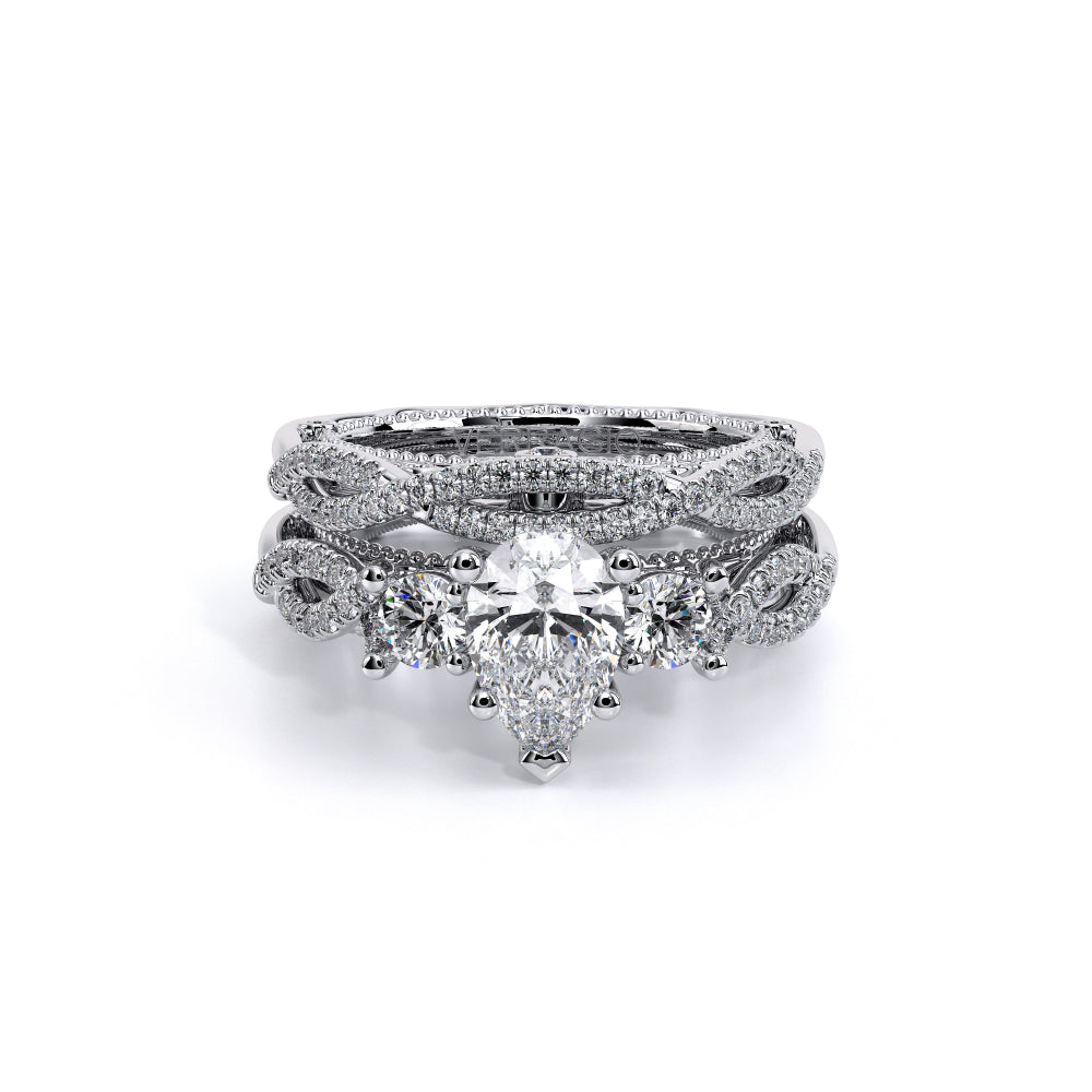 VENETIAN-5013PEAR is a three stone diamond engagament ring featuring two round side diamonds seemlesly integrated on a twisted diamond shank. The inner profile showcases a handcrafted lace and our Verragio signature beading. Personalize this beauty with a center stone shape of your choice.