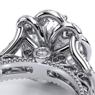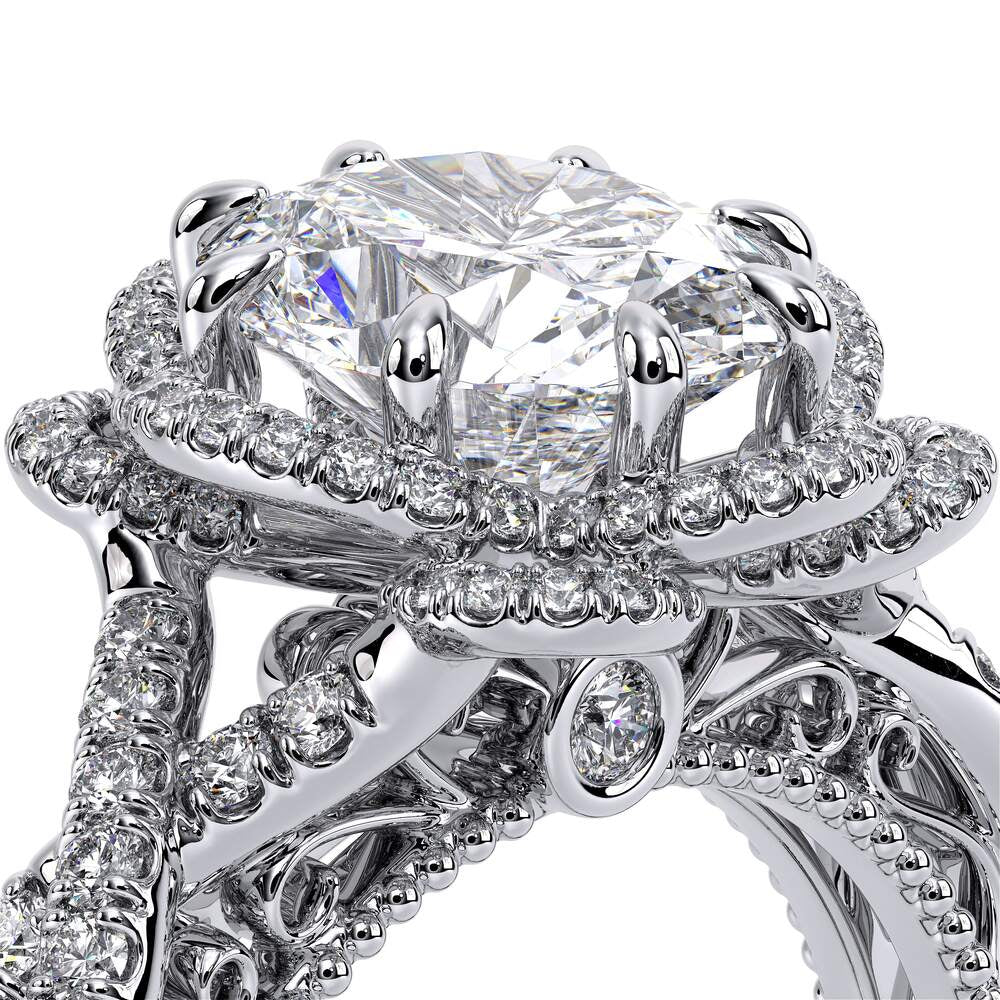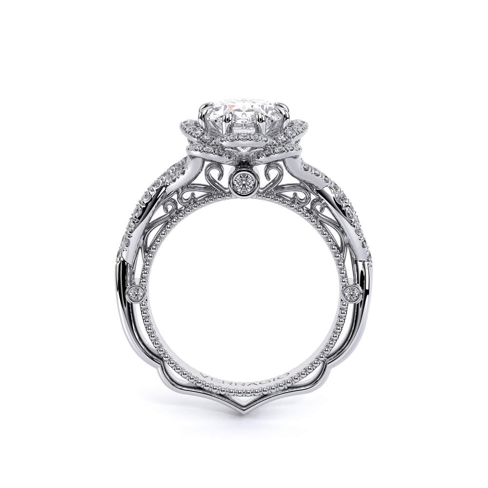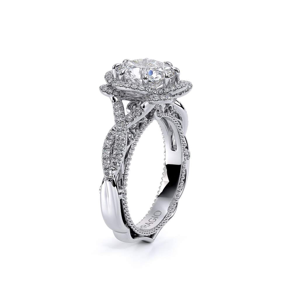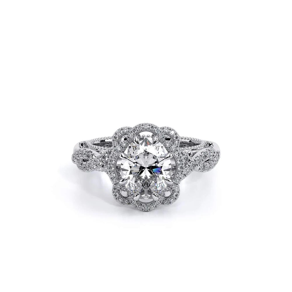 VENETIAN-5051OV engagement ring features our beautiful Verragio Floret halo modified for an Oval center along with a twisted shank encrusted with round brilliant diamonds. An intricately crafted lace design along with our Verragio signature beading further enhances this gorgeous piece and you can't help but fall in love with it.