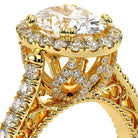 VENETIAN-5061CU-TT engagement ring from the Venetian Collection, features a unique diamond adorned basket topped with a cushion shaped single halo made for a round center. A delicate straight shank encrusted with round brilliant diamonds completes this beautiful ornate design.