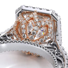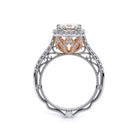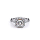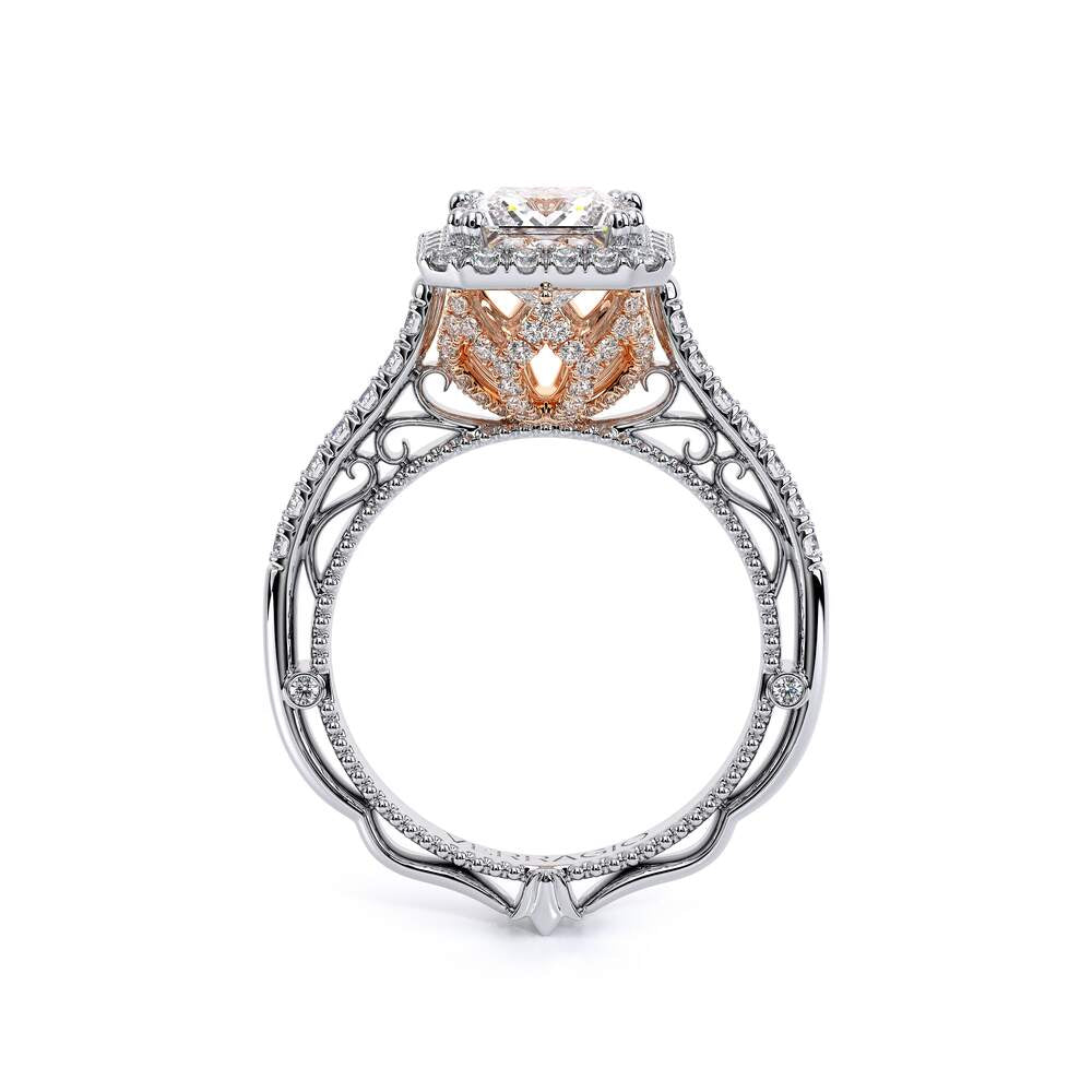 VENETIAN-5061P engagement ring from the Venetian Collection, features a unique diamond adorned basket topped with a square shaped single halo made for a princess center. A delicate straight shank encrusted with round brilliant diamonds completes this beautiful ornate design.