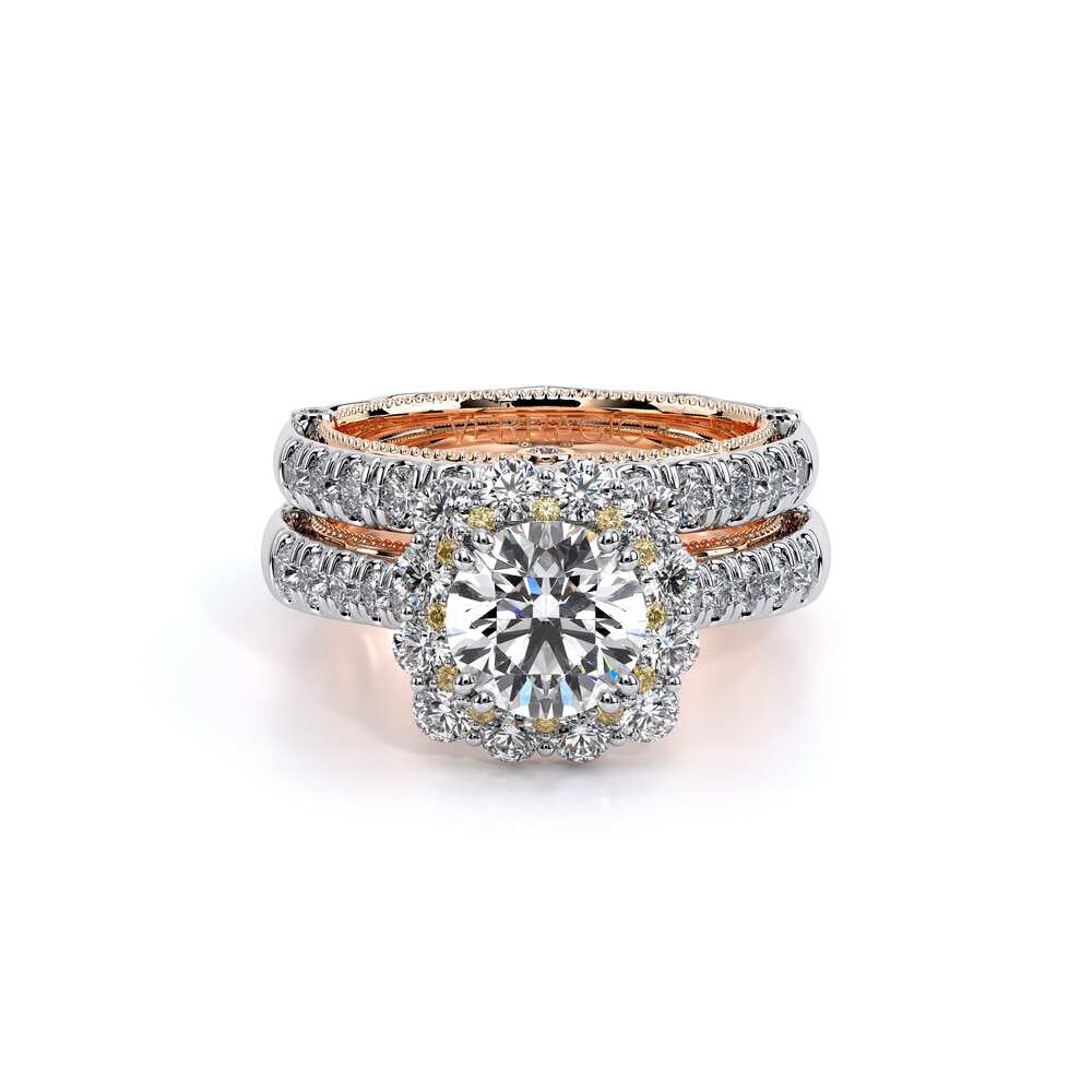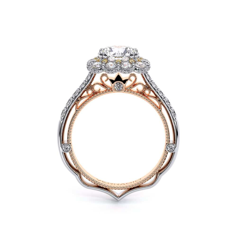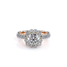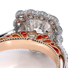 VENETIAN-5080CU engagement ring features an cushion Enchanted Diamond Halo�� with a three layer halo design, adding on to the sparkle of the center round diamond. This beauty features graduating round brilliant diamonds on the shank all infused together with our handcrafted lace and signature beading on the inside. The artistry and the craftsmanship of this ring will effortlessly make you stand out and shine.