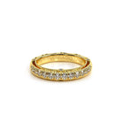 VENETIAN-5080W from the Venetian Collection, is a straight band featuring round brilliant diamonds. The inside profile showcases three bezels set round diamonds along with lace & signature beading. Complete your Verragio look by customizing your bridal set today.