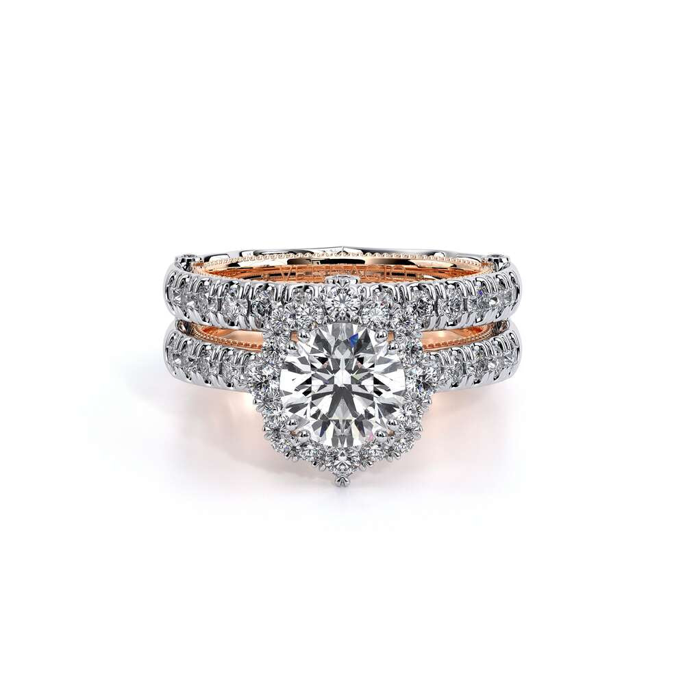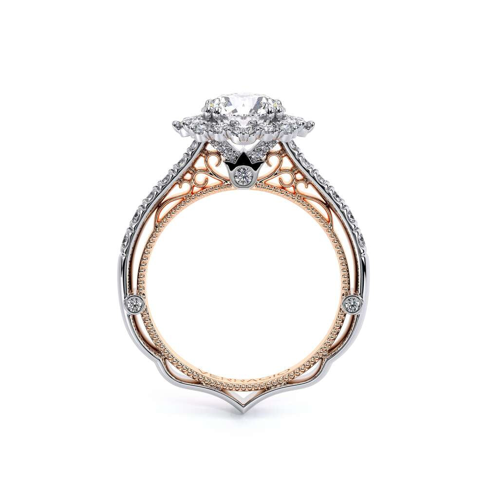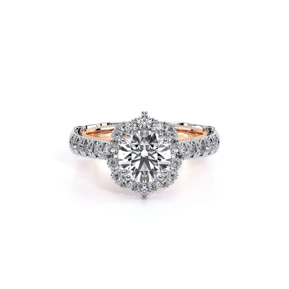VENETIAN-5083R engagement ring features our gorgeous Starburst Halo made for a round center stone. A straight shank adorned with round brilliant diamonds completes this beauty. Continue the vintage look with a lace shank on the bottom or keep it simple with our classic shank.