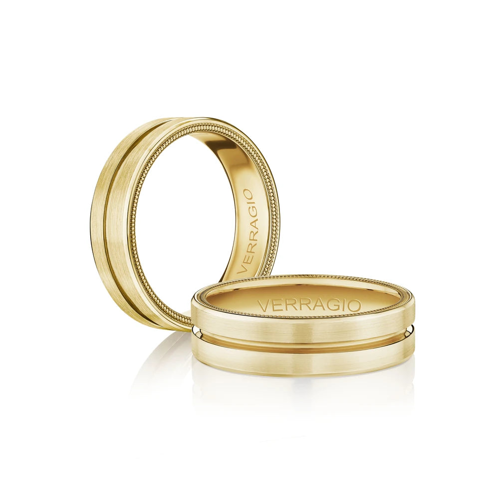 VW-6121 is our stylish 6MM width men's band with a matte finish. Etched through the heart of the ring runs a singular rose gold groove enhanced by the interior detailing of Verragio's signature rose gold beading.