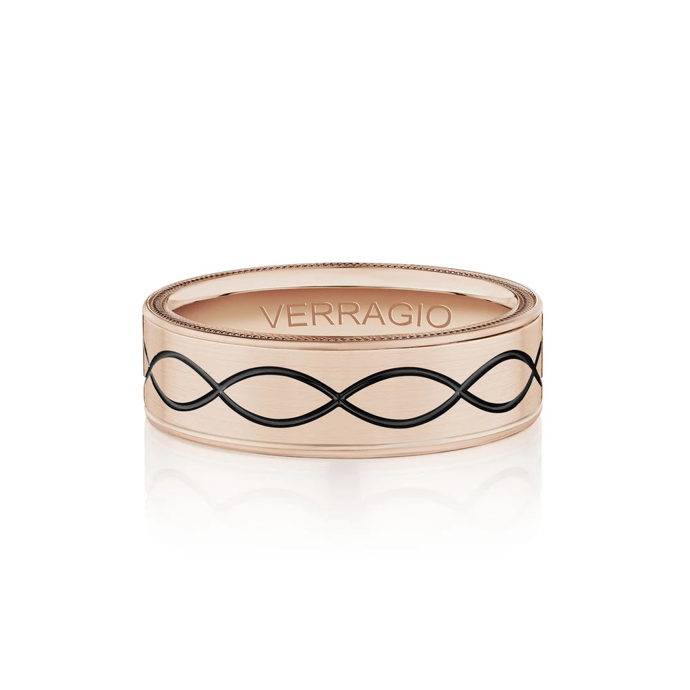 VWB-7013 is our unique 7MM men's band with the symbol of eternal love. Black rhodium is etched into the heart of the ring as it intertwines while showcasing Verragio signature beading along the edges.