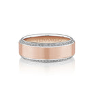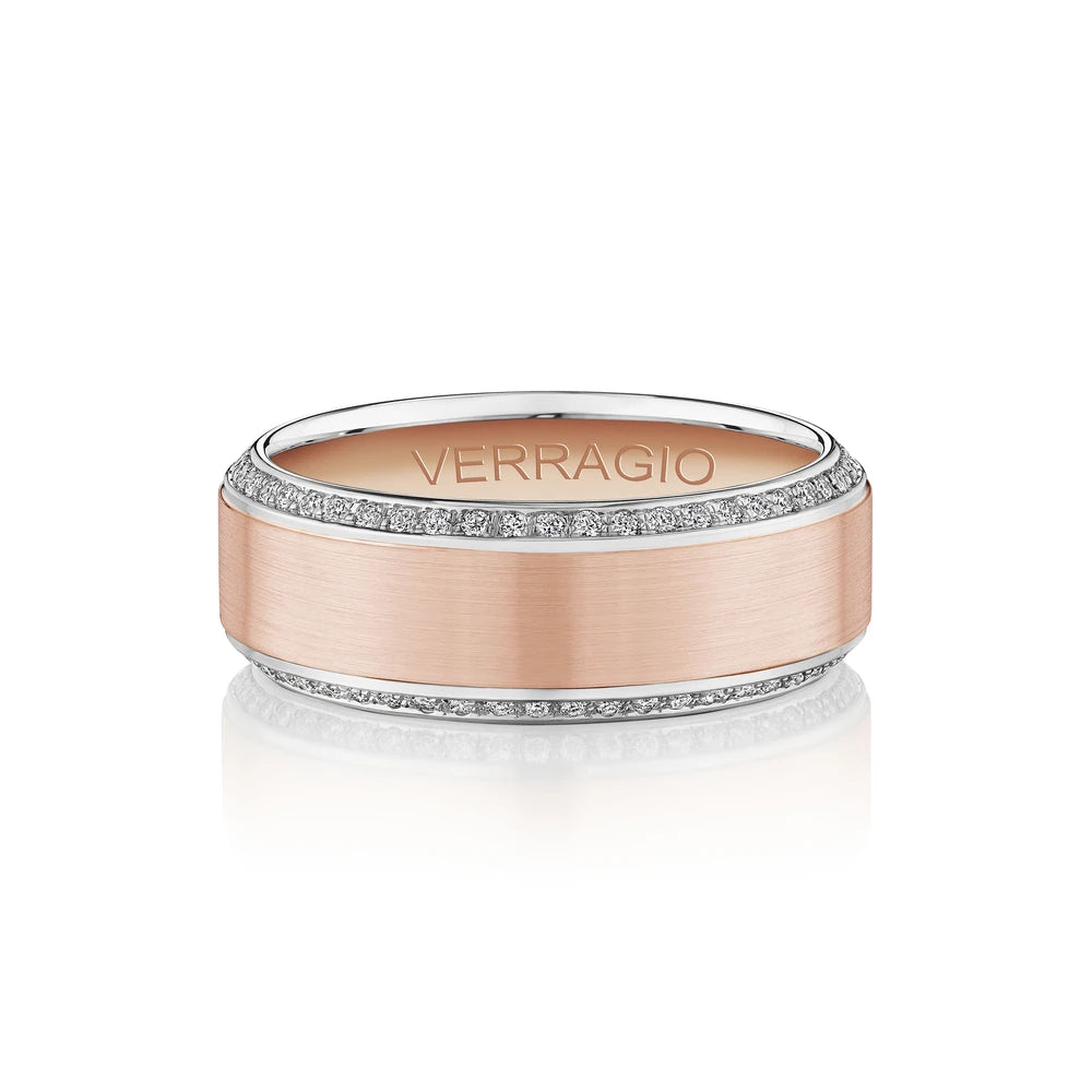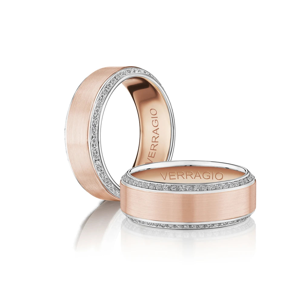 VWD-8912 is a satin finished band accented with pave diamonds, showcasing a blend of traditional elegance and luxurious detail.