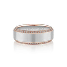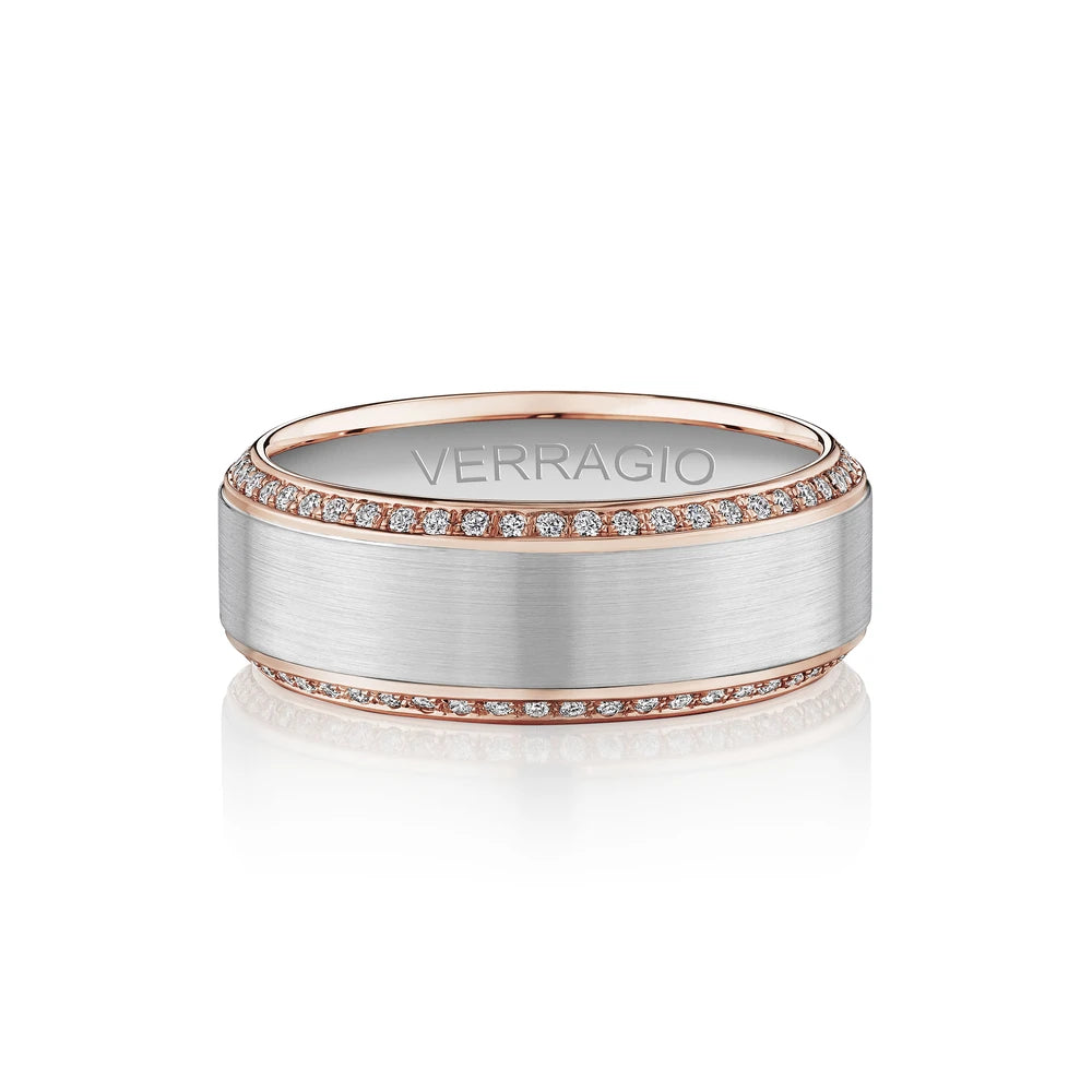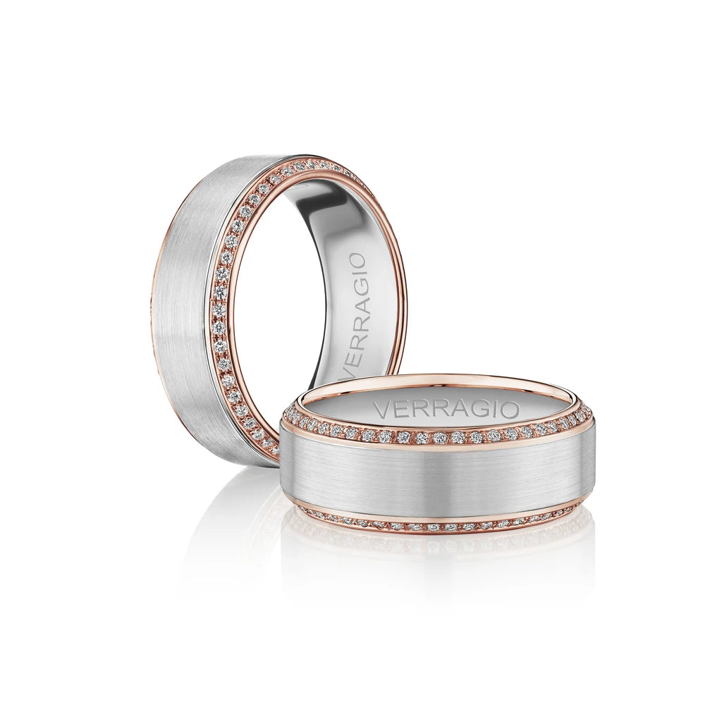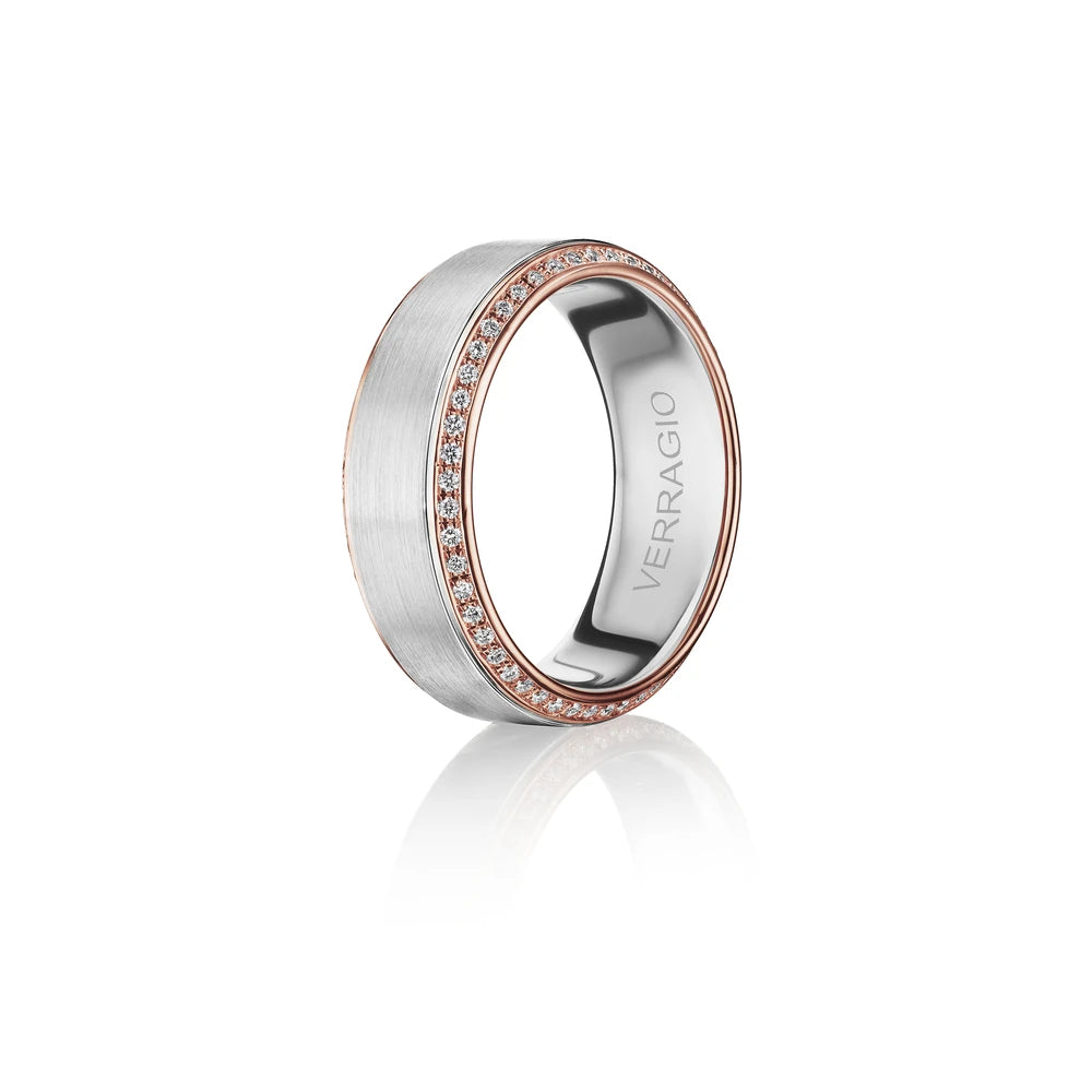 VWD-8912 is a satin finished band accented with pave diamonds, showcasing a blend of traditional elegance and luxurious detail.